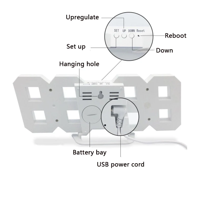 5. Zegar led musi być podłączony. Możesz ukryć przewód zasilający za niektórymi przedmiotami lub w ścianie, będzie piękniej ozdobić swój dom.