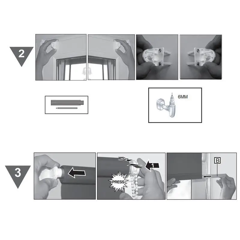 Te produkty zestaw mocujący są do standardowych rolety z 25mm rura o średnicy. Wsporniki mogą być przymocowane do góry, boku lub twarzy.