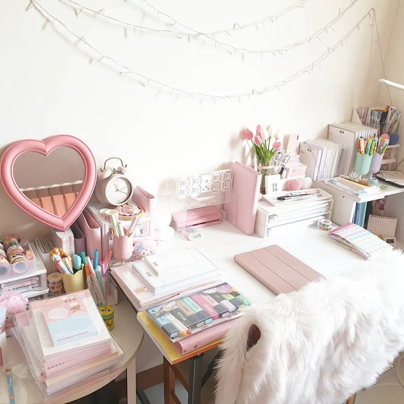 W & G Ins Love Heart lusterko kosmetyczne wiszące lustro dormitorium różowe białe koreańskie lustra ozdobne dla dziewczynek