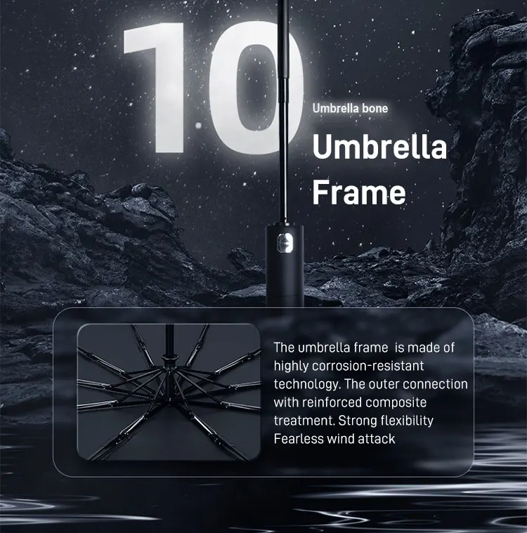 W pełni automatyczny wbudowany odblaskowy Led lekki parasol składany parasol 10 podróży parasol odporny na wiatr oświetlenie parasol deszcz Gea