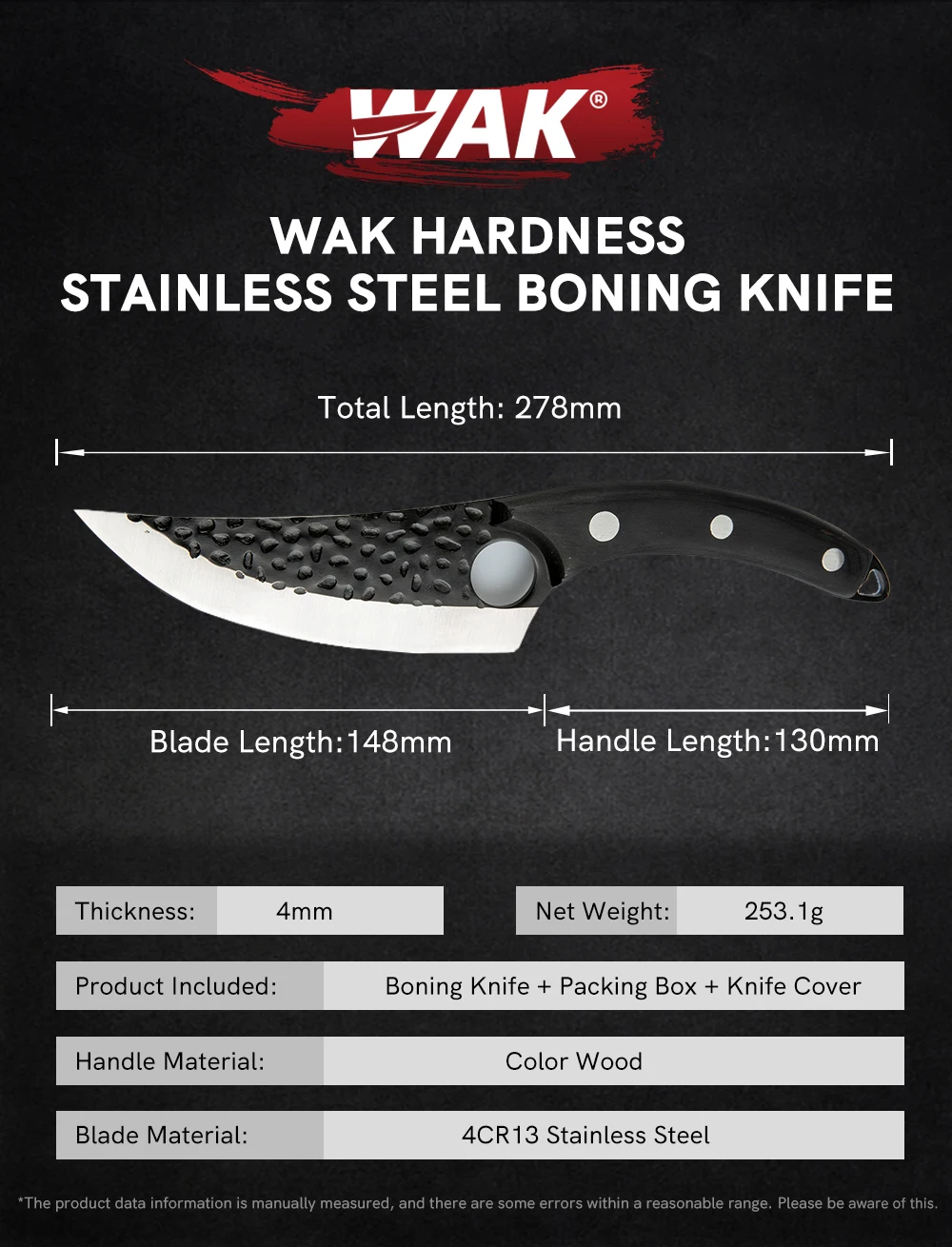 WAK ze stali nierdzewnej kuchnia kucharz tasak kości nóż Handmade Full Tang noże kuchenne zakrzywiony uchwyt z palisandru nóż rzeźnicki
