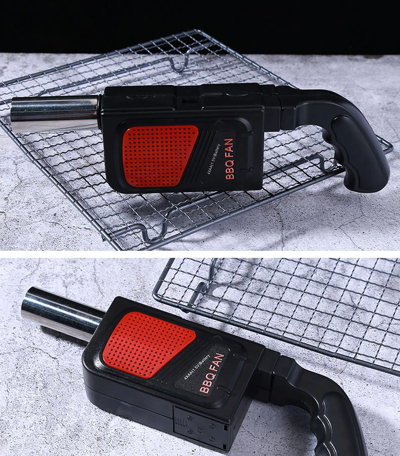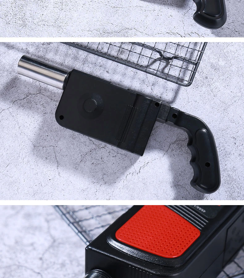 Bardzo praktyczne narzędzie do grillowania, nie musisz dmuchać ustami, gdy nie możesz zapalić węgla drzewnego! Ten elektryczny przycisk otwierania automatycznie wydmuchuje powietrze, co jest bardziej czasochłonne i pracochłonne niż ręczne.