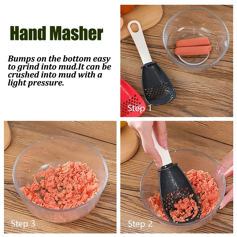 3. Wielofunkcyjna łyżka do gotowania w kuchni: może być używana do wycierania ziemniaków, gotowane jajka, dynia lub fasola lub do gotowania, opróżniania i mielenia czosnku i imbiru.