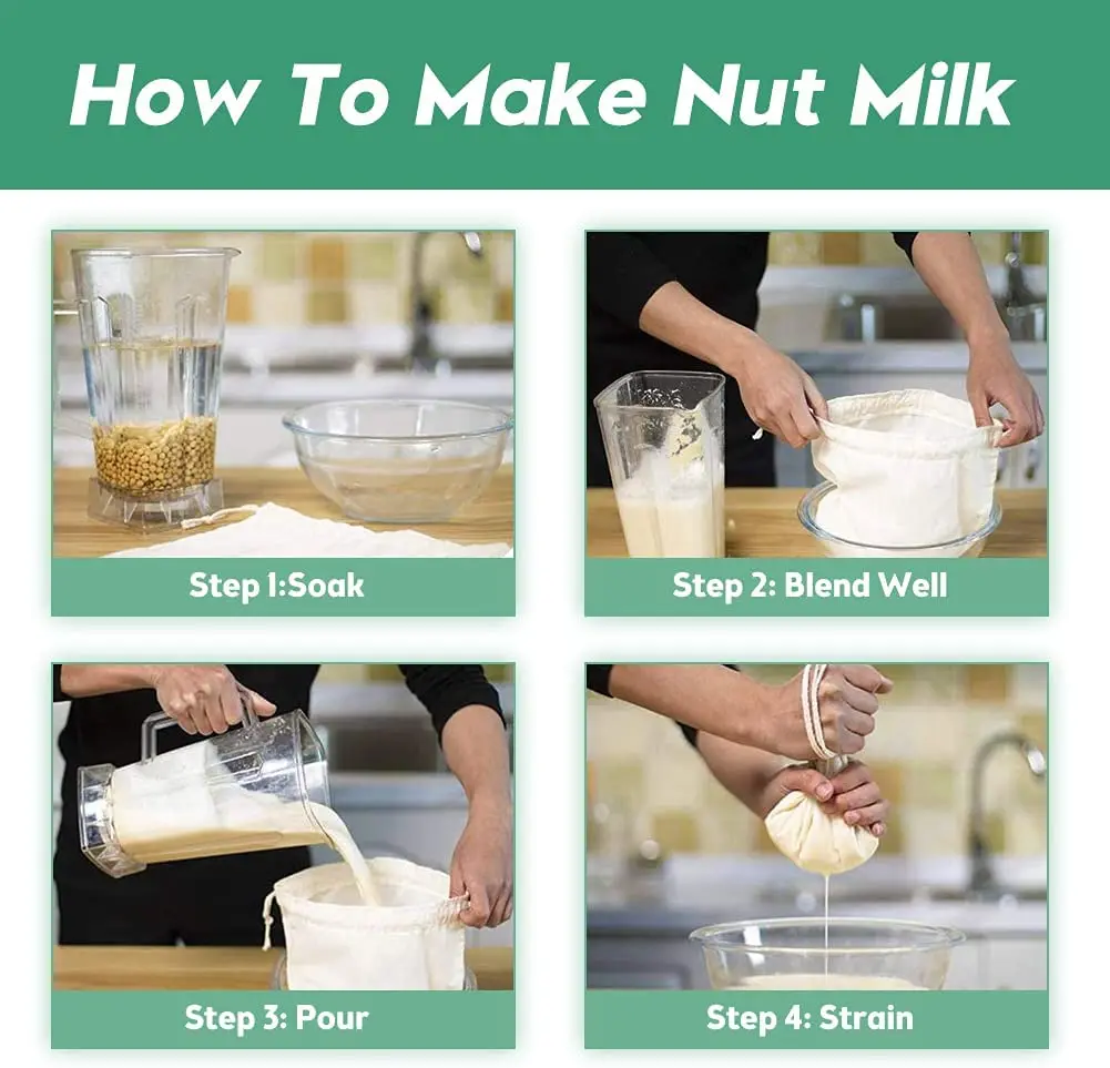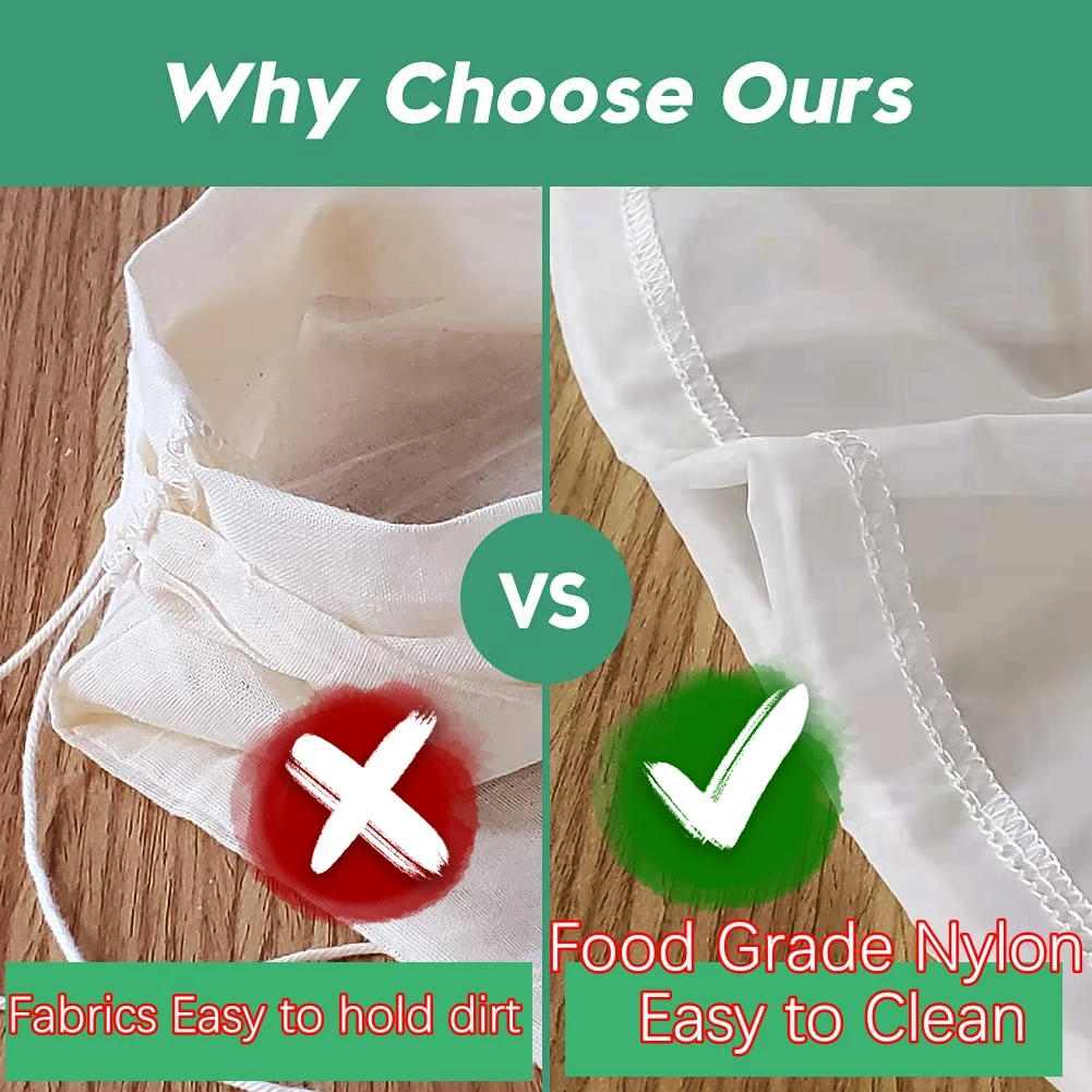 Naturalny materiał: nasze torby na mleko z organicznej bawełny są wykonane z wysokiej jakości nylonu spożywczego. Spraw, aby worki na mleko z orzechów stały się zdrowsze.