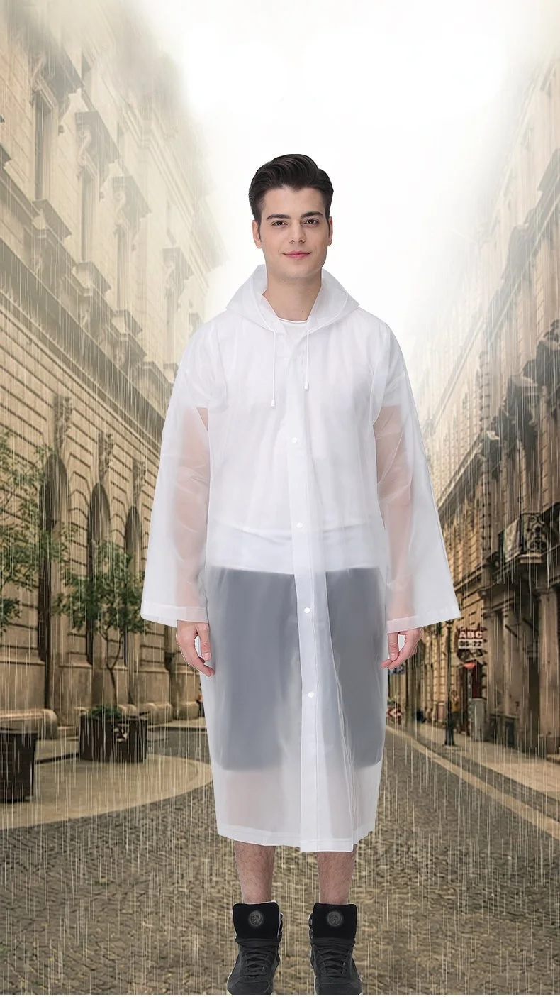 Nazwa produktu: Wielokrotnego użytku nieprzemakalny płaszcz przeciwdeszczowy kobiety mężczyźni zewnętrzna odzież przeciwdeszczowa matowa zagęszczona dorosła przezroczysta przenośna plastikowa kurtka przeciwdeszczowa z kapturem