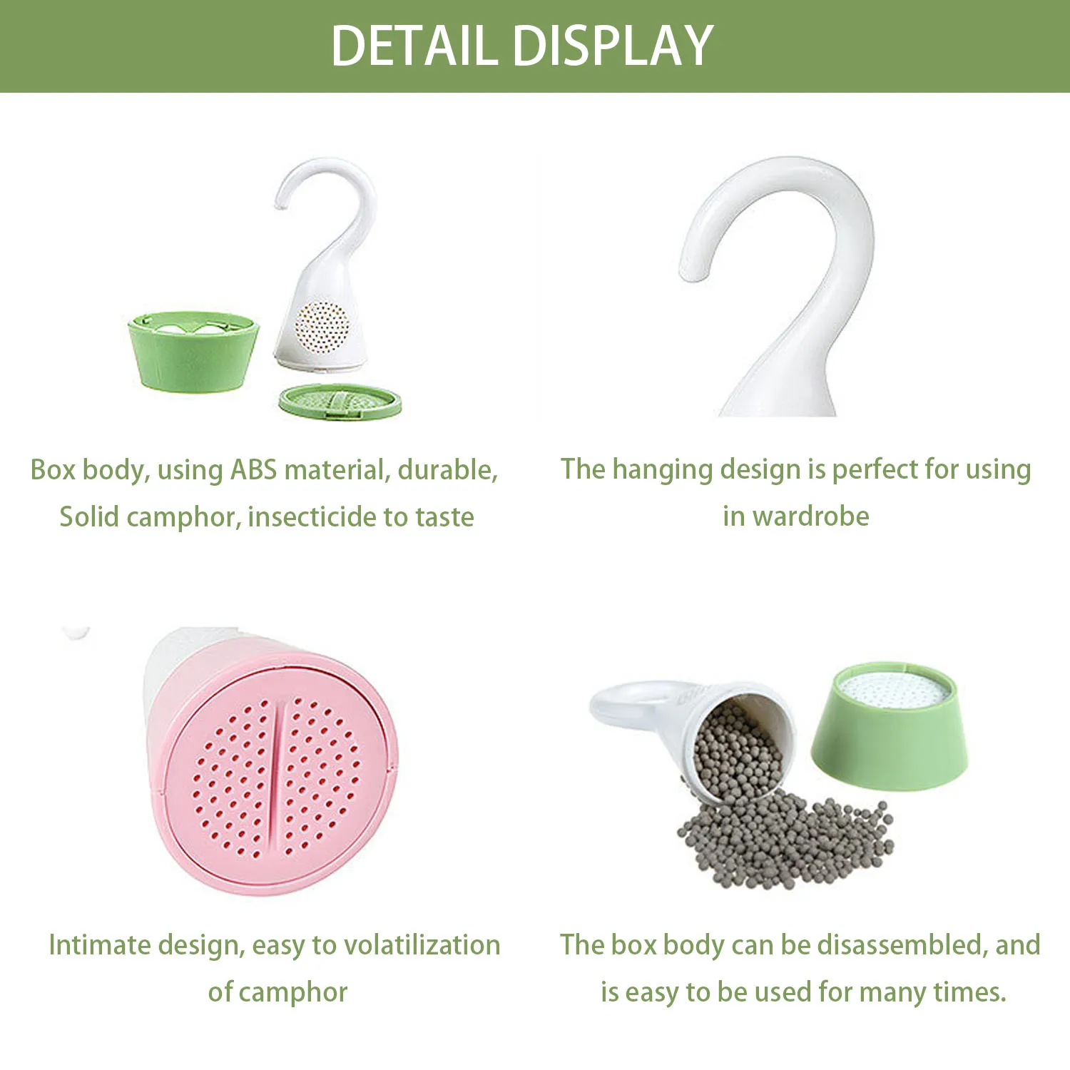 Dwa w jednym osuszanie kamfory box, wbudowany środek osuszający i kamforowe kulki, silny efekt wchłaniania wilgoci, skutecznie usuwa nadmiar wilgoci z powietrza