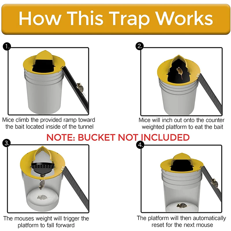 【Special designed】 nowo zmodernizowany odłączany pułapka na myszy, łatwy w montażu i wyższej jakości. Ta pułapka została zaprojektowana z zamiarem użycia w stylu catch and release, ale można napełnić wiadro wodą, aby pułapka była śmiertelna. [Wiadro 5 galonów nie jest wliczone w cenę]