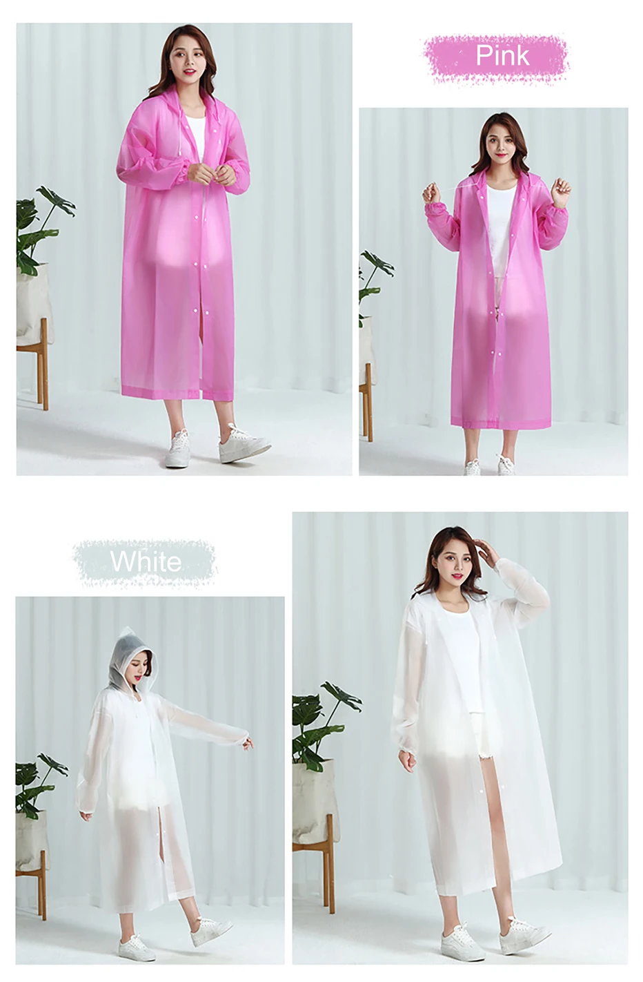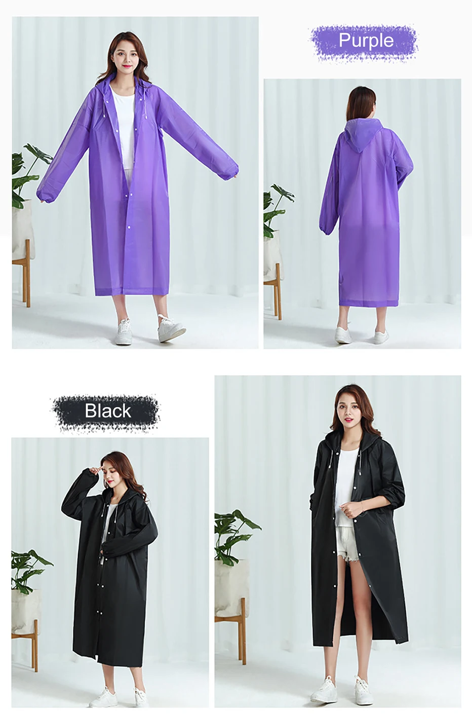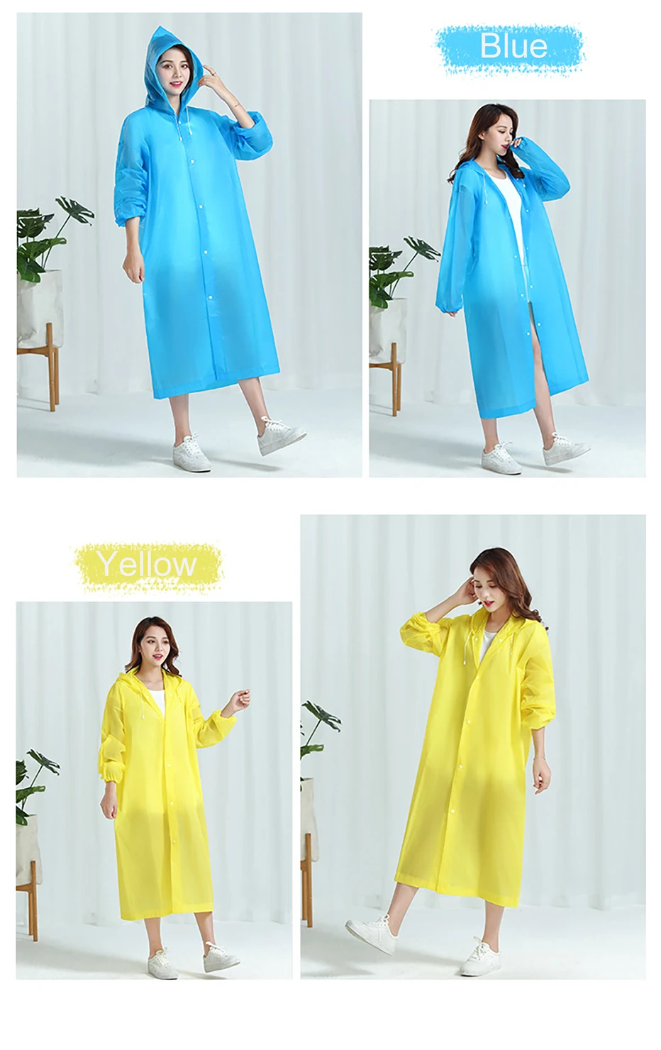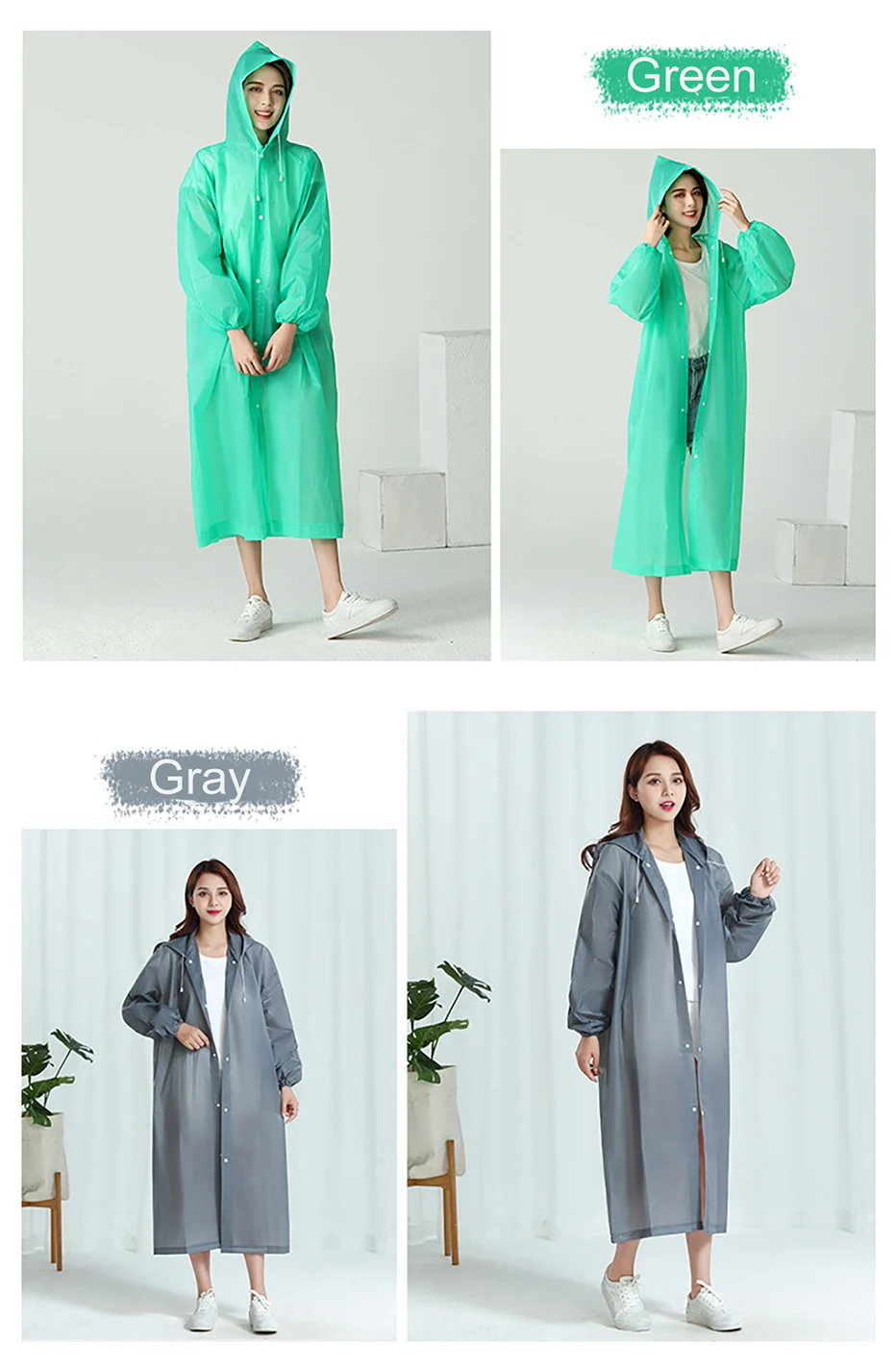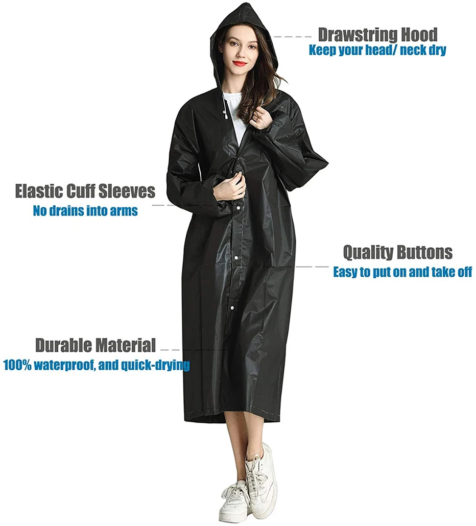 Przenośne płaszcze przeciwdeszczowe EVA wielokrotnego użytku Poncho przeciwdeszczowe z kapturem i elastyczny mankiet rękawy