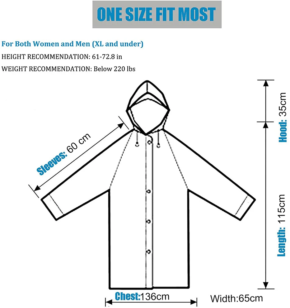 ✅Bezpieczeństwo i praktyczne: grubość 0.15mm, prawie 50% grubszy materiał półprzezroczyste ubrania przeciwdeszczowe