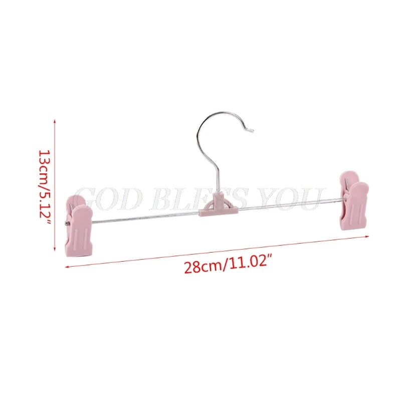 Wieszaki na szorty z 2 regulowanymi obrotowymi klipsami, możesz przesunąć 2 klipsy wieszaków na spodnie/spódnice, aby pomieścić szeroki zakres szerokości od 2.56 „do 10”, aby dopasować je do różnych rozmiarów spodni, spódnic, czapek, krawaty lub jakiekolwiek ubrania, które chciałbyś powiesić. Gładki plastik klipsów zapewnia również większą przyczepność do bezpiecznego trzymania odzieży.