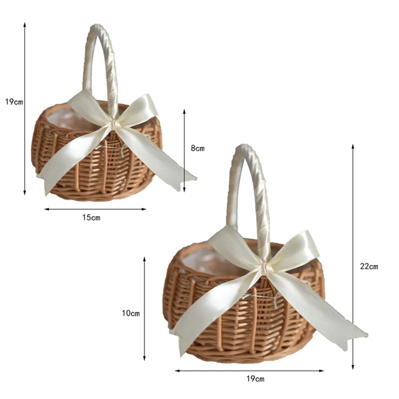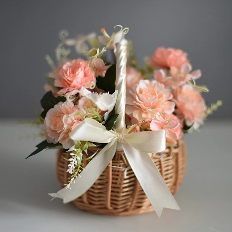 Konstrukcja uchwytu: konstrukcja uchwytu jest wygodny i praktyczny. Owinięte białą/różową wstążką i kokardkami na obu końcach, co nie tylko sprawia, że kosz pięknie zdobienia, ale ten półksiężycowy kosz na kwiaty ma uchwyt, który jest wygodny do łatwego poruszania się.