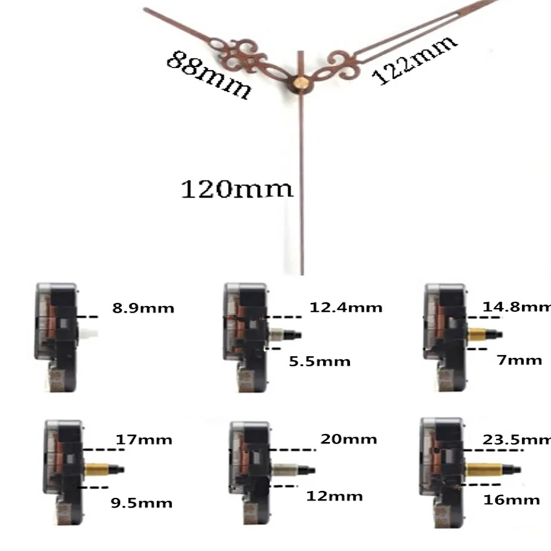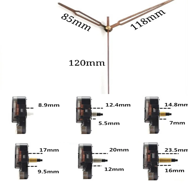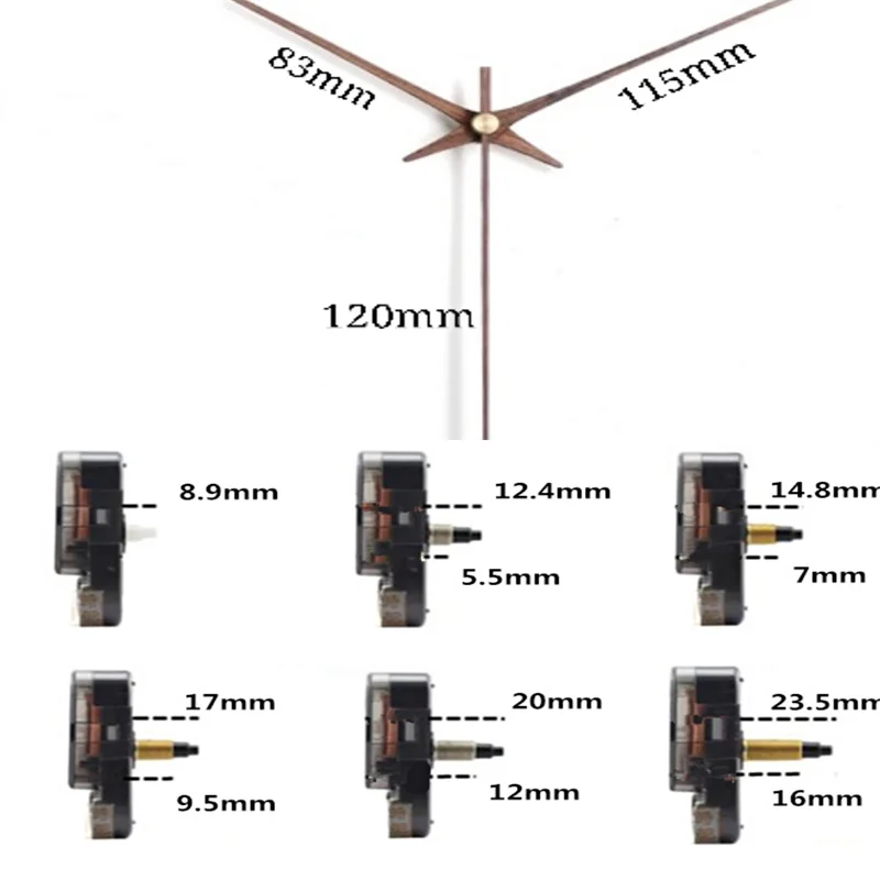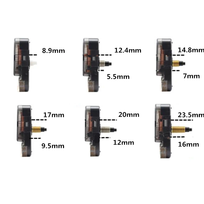 Długość wału ruchu zegara: 8.9mm/12.4mm/14.8mm/17mm/20mm/23.5mm (opcjonalnie)