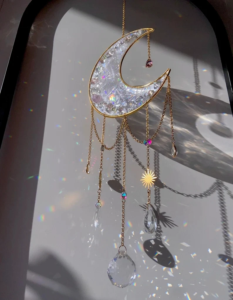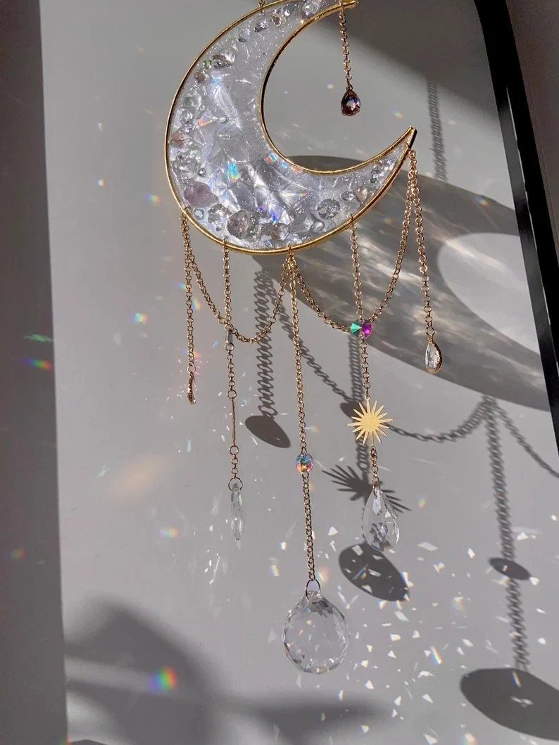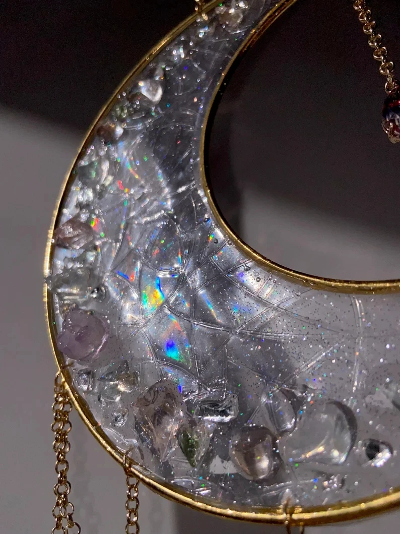 Bardzo wyjątkowe ręcznie wiszące żywiczne „księżycowe” suncatchers z wysokiej jakości kawałkami, w tym;