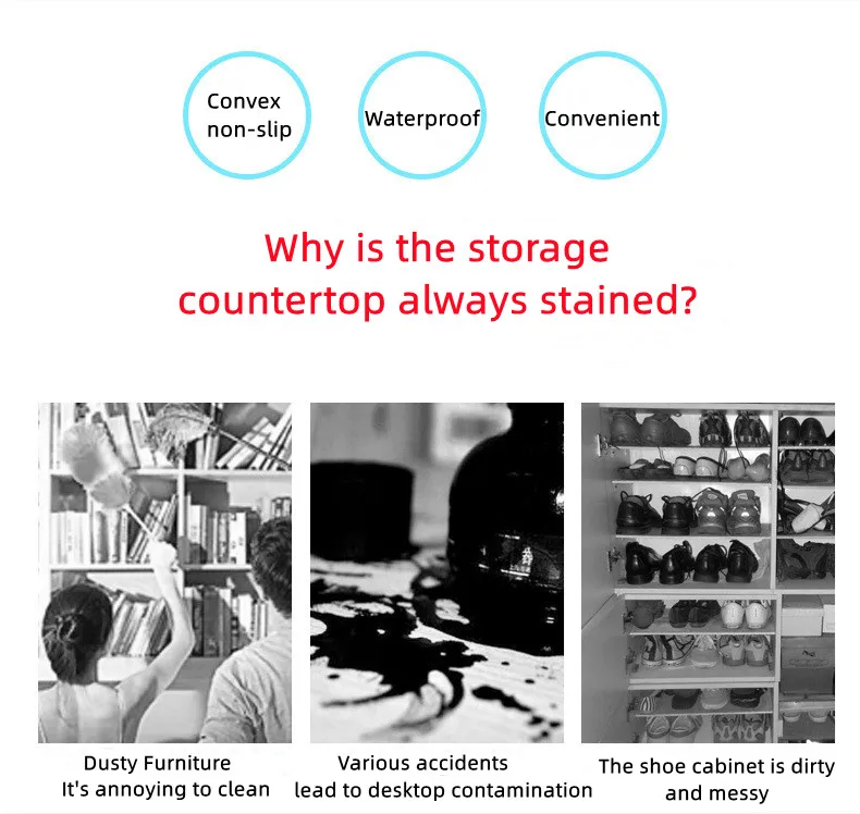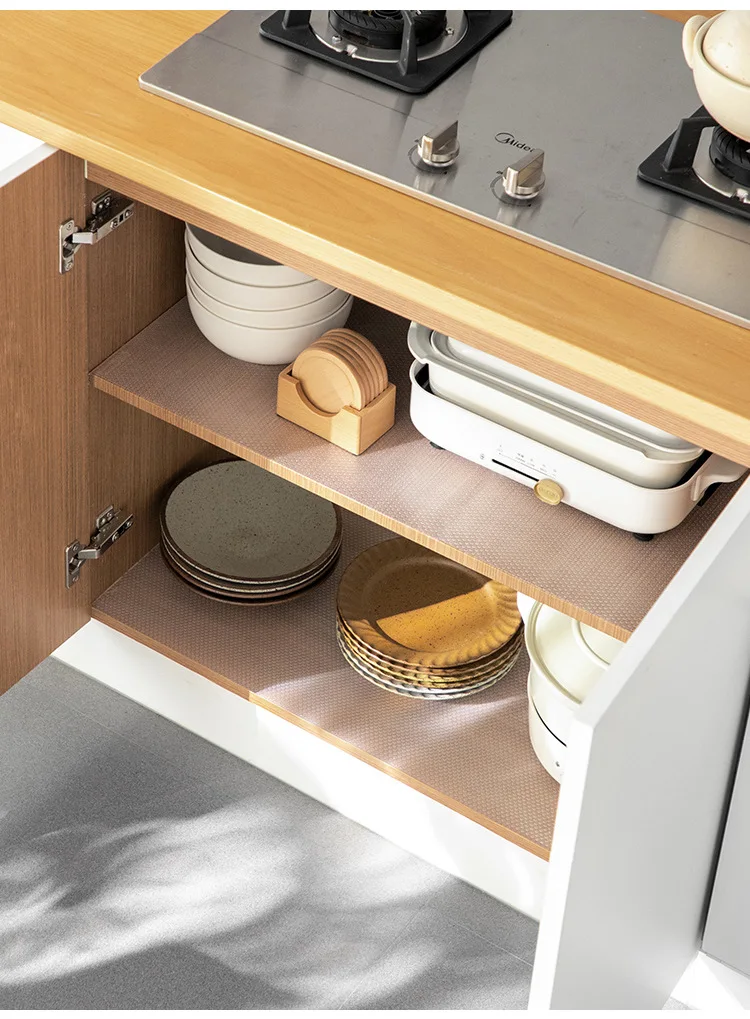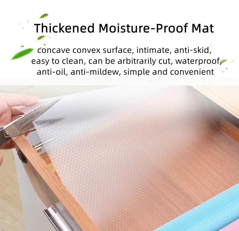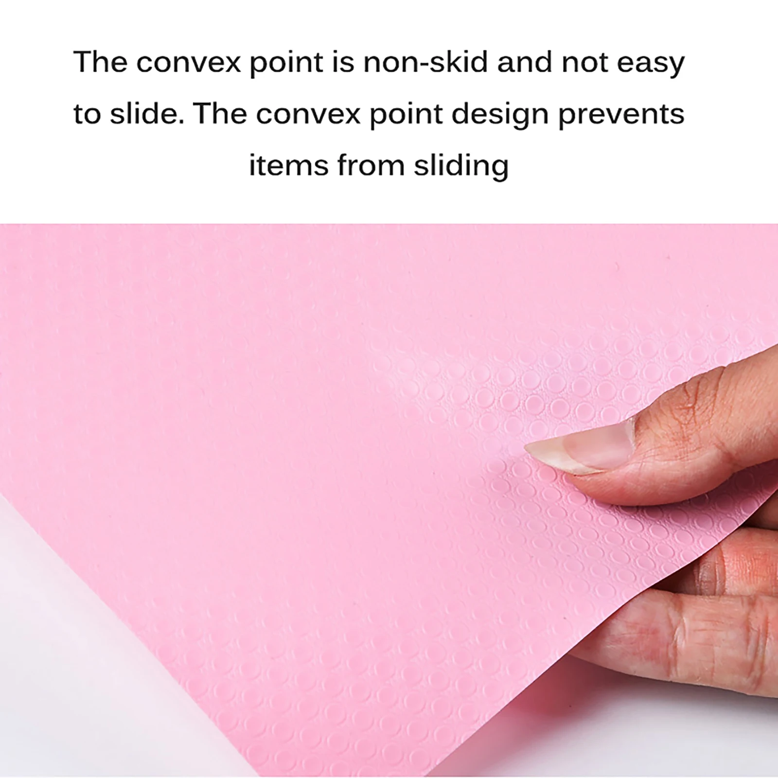 Wodoodporna pokrywa szuflady została zaprojektowana z małym okrągłym wzorem kropki, który posiada dobrą funkcję antypoślizgową. Może zatrzymać rzeczy na wodoodpornej pokrywie szuflady.