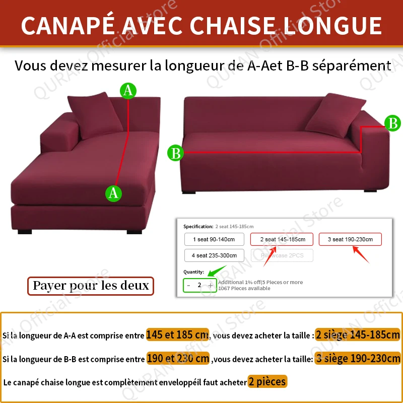 2. Mamy całkowicie 4 rozmiary do wyboru, sprawdź odpowiedni rozmiar swojej sofy, jeśli nie wiesz, jak wybrać odpowiedni rozmiar, możesz wykonać poniższe „zdjęcie pomiaru rozmiaru”, aby zmierzyć lub powiedzieć nam swój rozmiar sofy, pomożemy ci.