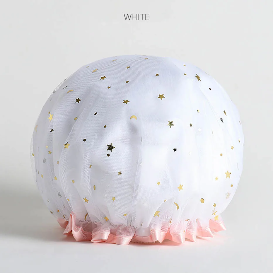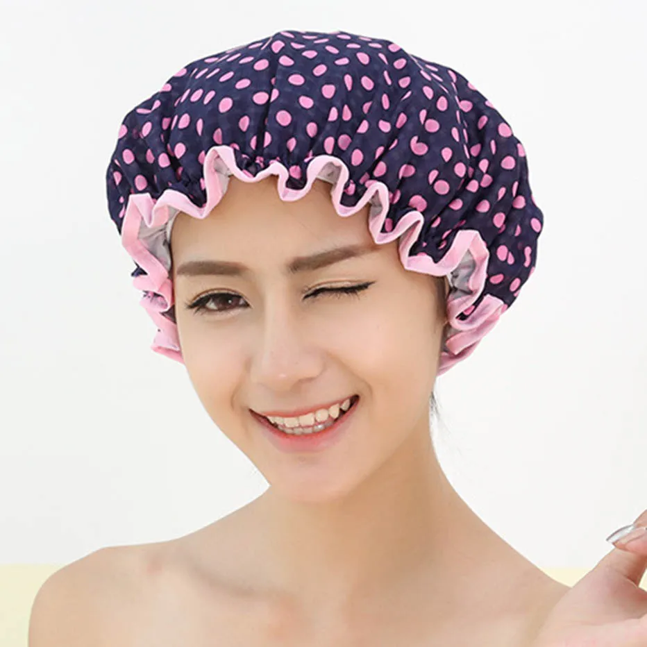 Gruby 1 sztuk wodoodporna wanna kapelusz podwójna warstwa pod prysznic do włosów pokrywa kobiety dostarcza czepek prysznicowy akcesoria łazienkowe
