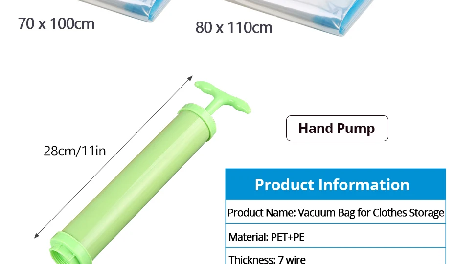 4. Łatwy w obsłudze: łatwy w obsłudze dzięki tym ogromny rozmiar ubrań i kołdry za pomocą ręcznej pompy, która może z łatwością pomóc wypompować powietrze między bawełnami, piórami i tak dalej.