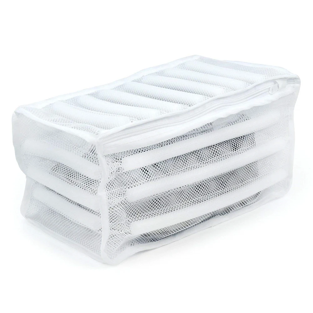 Ma zamek błyskawiczny, a torba pozostanie zamknięta podczas prania. Jest znacznie mniej głośny, ponieważ buty są trzymane razem i nie rozbijają się