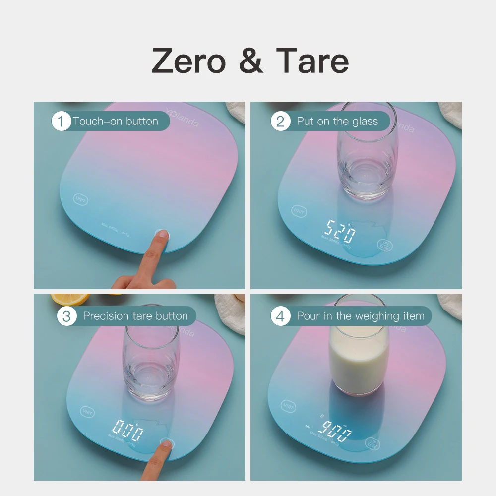 Yolanda smart food scale przyjmuje przyciski czuły na dotyk, umożliwiając łatwe korzystanie z niego i oferując inne wrażenia niż inna waga kuchenna.