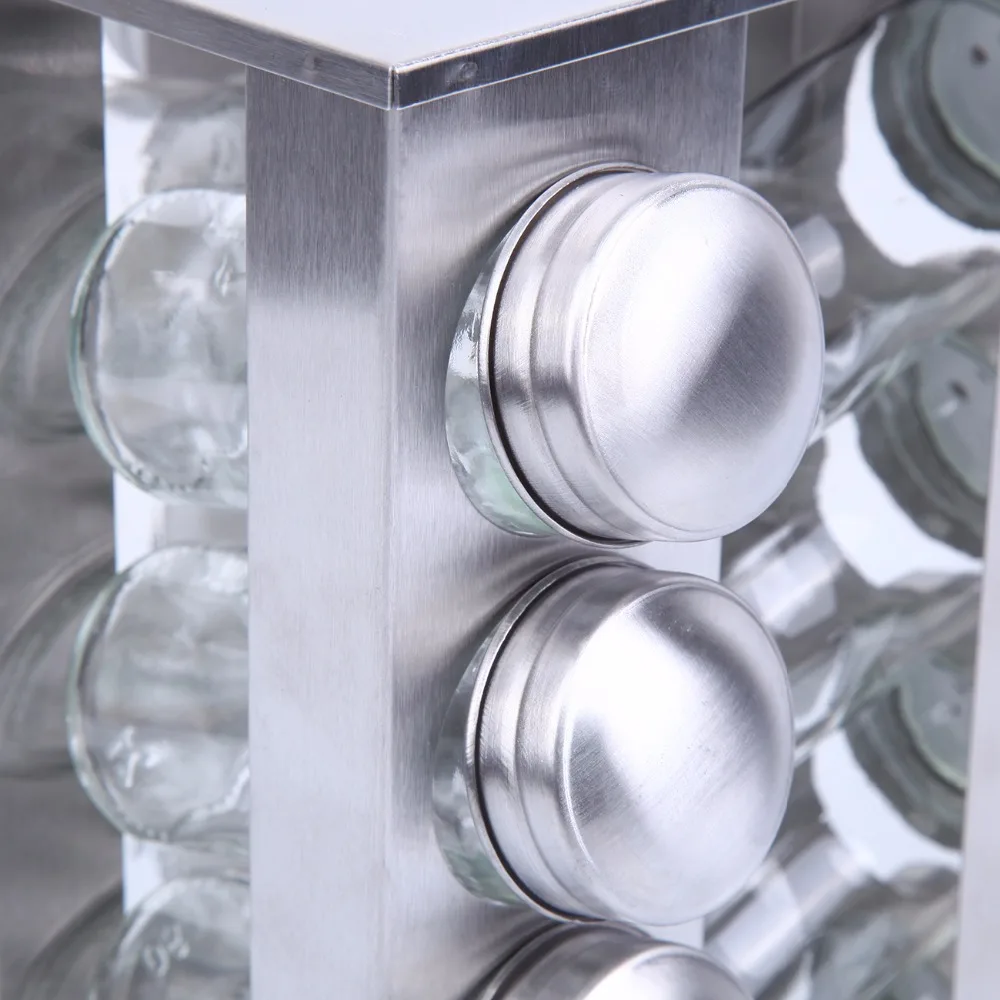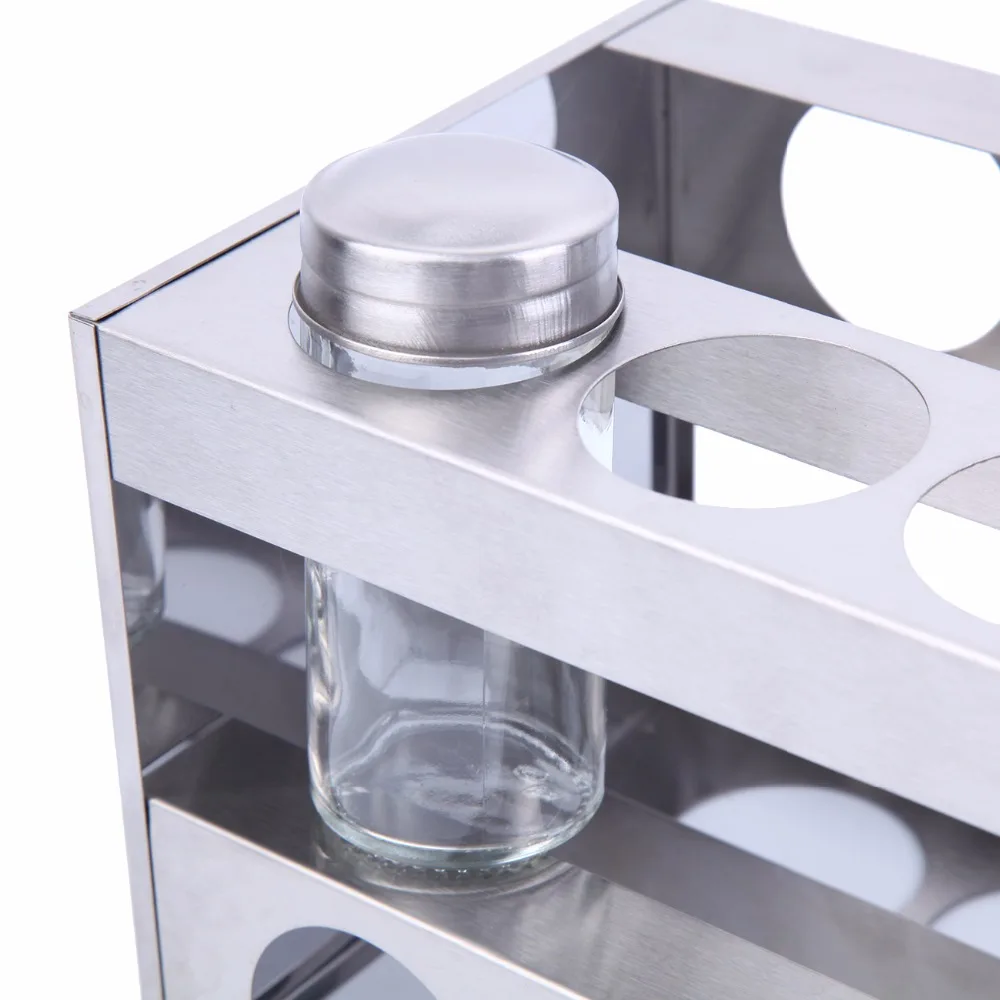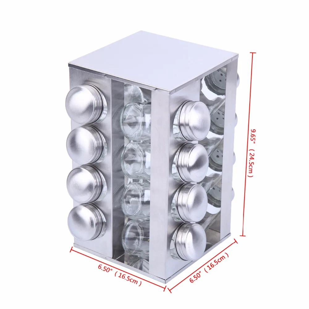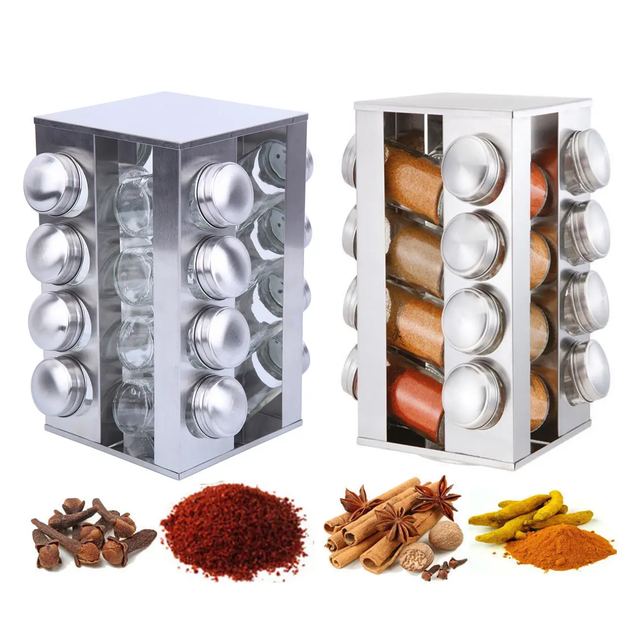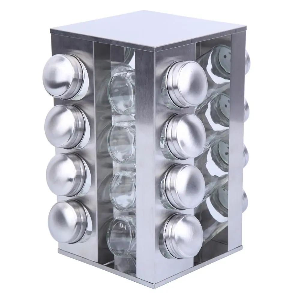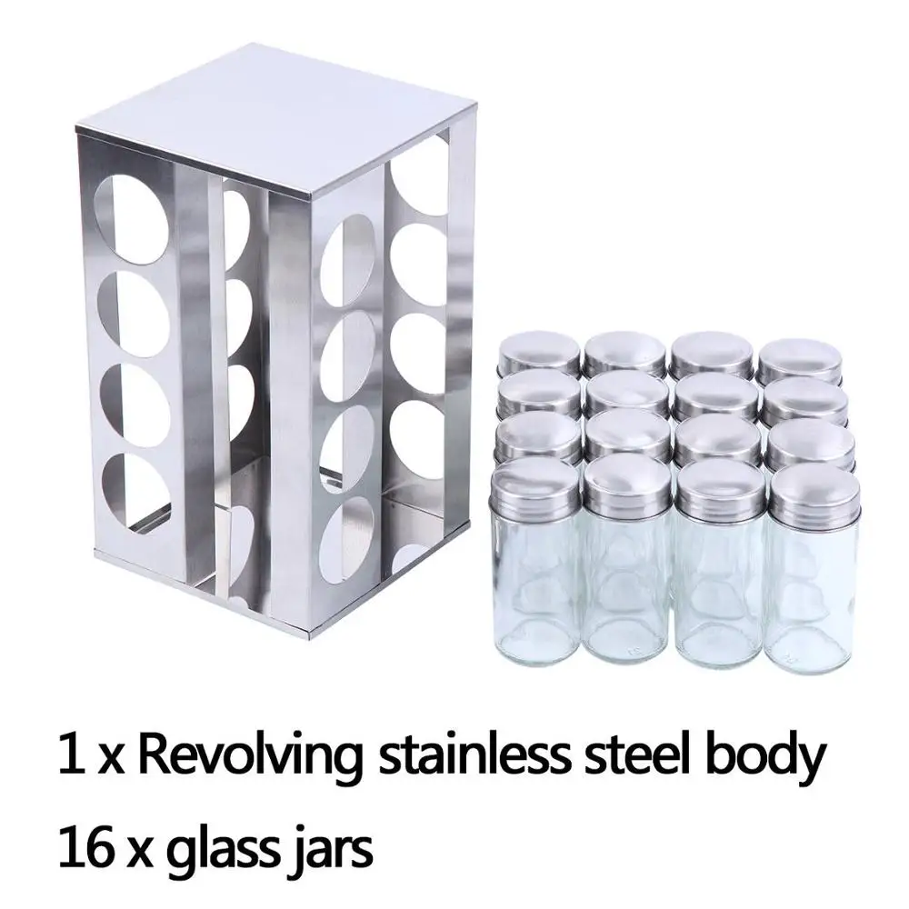 Yonntech 16 sztuk obrotowe słoiki przyprawy stojak ze stali nierdzewnej przyprawy stojak uchwyt przyprawa sól pieprz karuzela słoiczki na przyprawy kuchnia