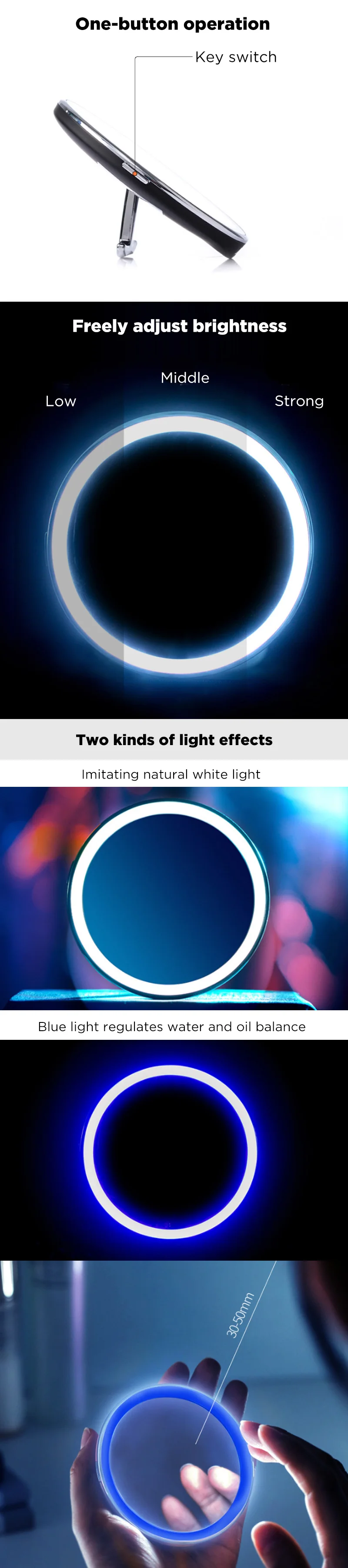Przenośna konstrukcja, łatwa w użyciu, nie boi się nakładać makijażu na zewnątrz; Swobodnie dostosuj jasność,
