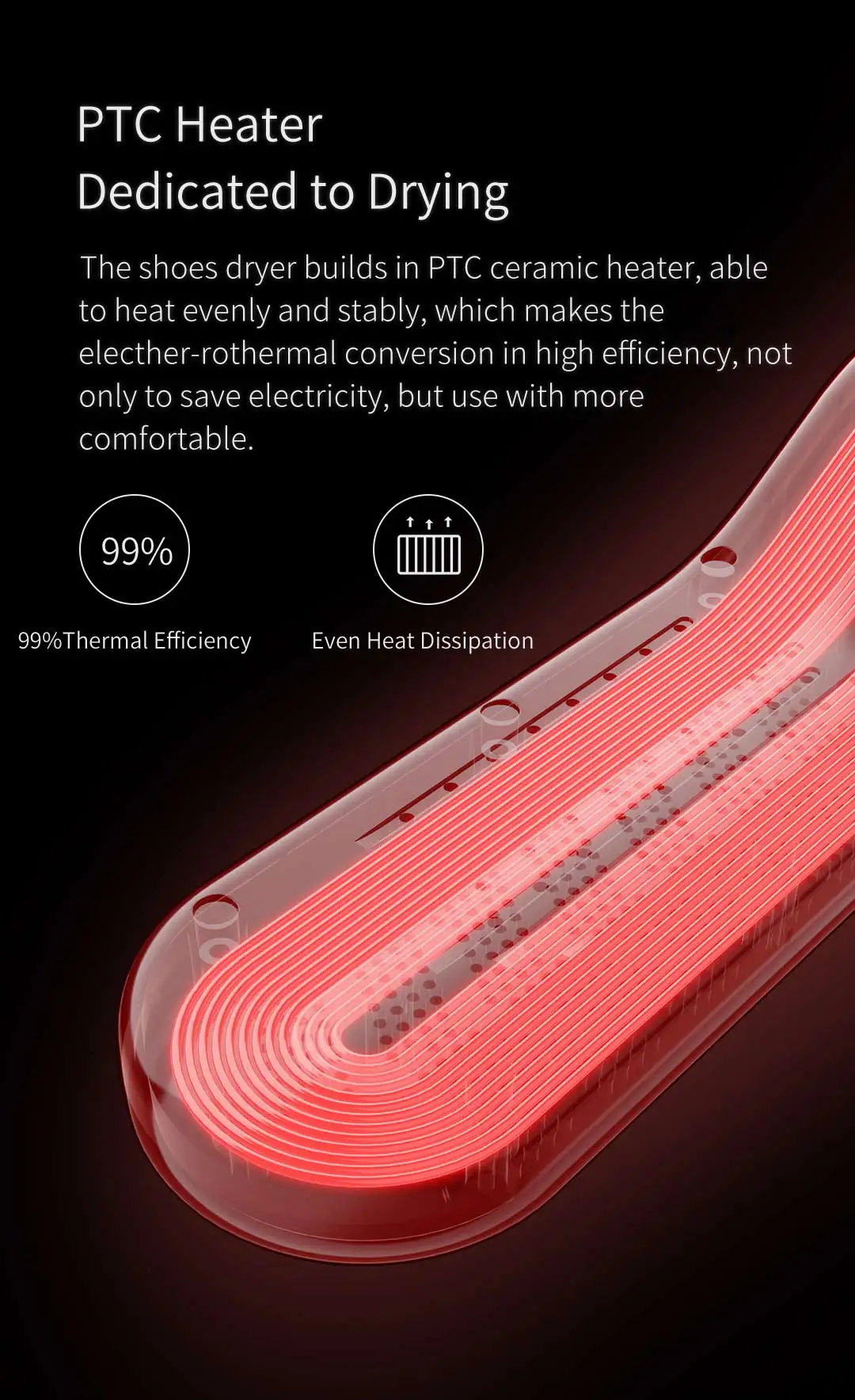 Suszarka do butów buduje się w ogrzewaczu ceramika PTC, zdolnym do równomiernego i stabilnego ogrzewania, co sprawia, że konwersja elektrotermiczna w wysokiej wydajności, nie tylko w celu oszczędzania energii elektrycznej, ale jest wygodniejsza.