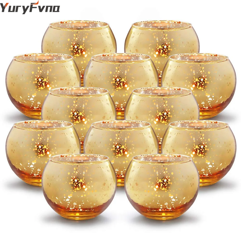 1. Nakrapiane złoto szkło posrebrzane świeczniki wotywne:Idealny akcent, aby dodać blasku i elegancji do imprezy i wystroju domu;