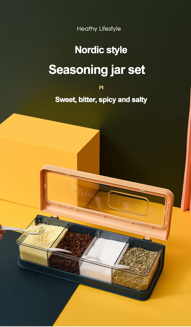 Z czterema przegródkami przezroczysty słoik na przyprawy solniczki i pieprzniczki Nordic przyprawy kuchenne zestaw kuchenny przyprawy schowek na zastawę stołową