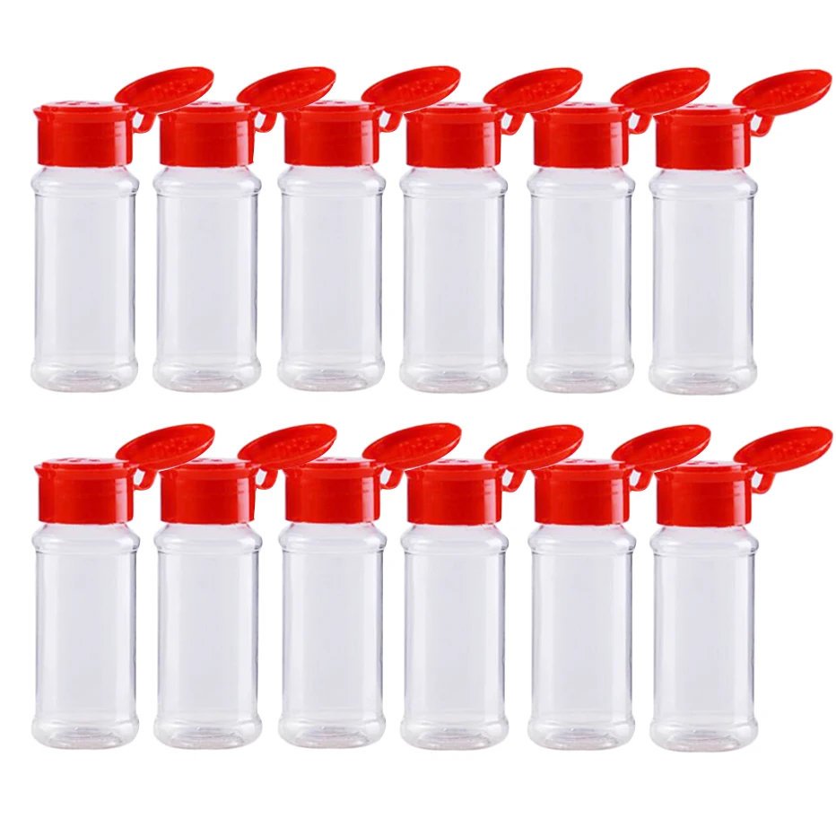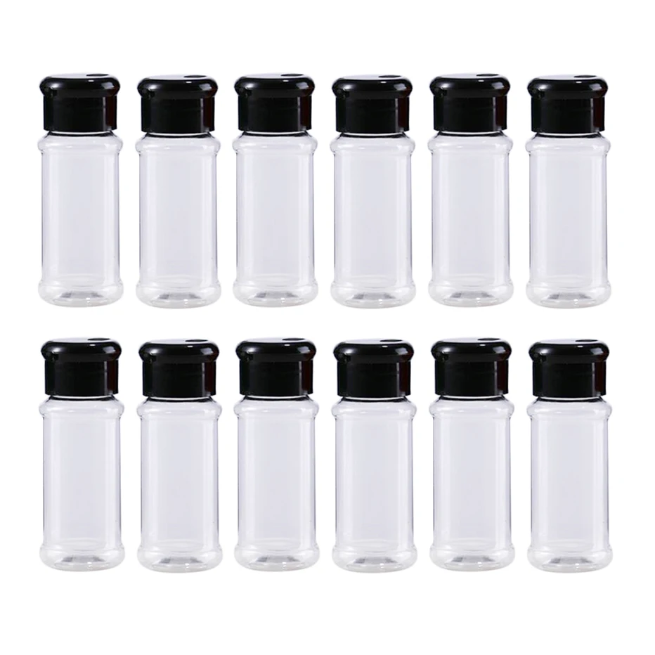 Z tworzywa sztucznego pojemnik na przyprawy okrągły kształt 100ml soli młynek do pieprzu słoik na przyprawy Chili pojemnik na przyprawy butelka 12 sztuk