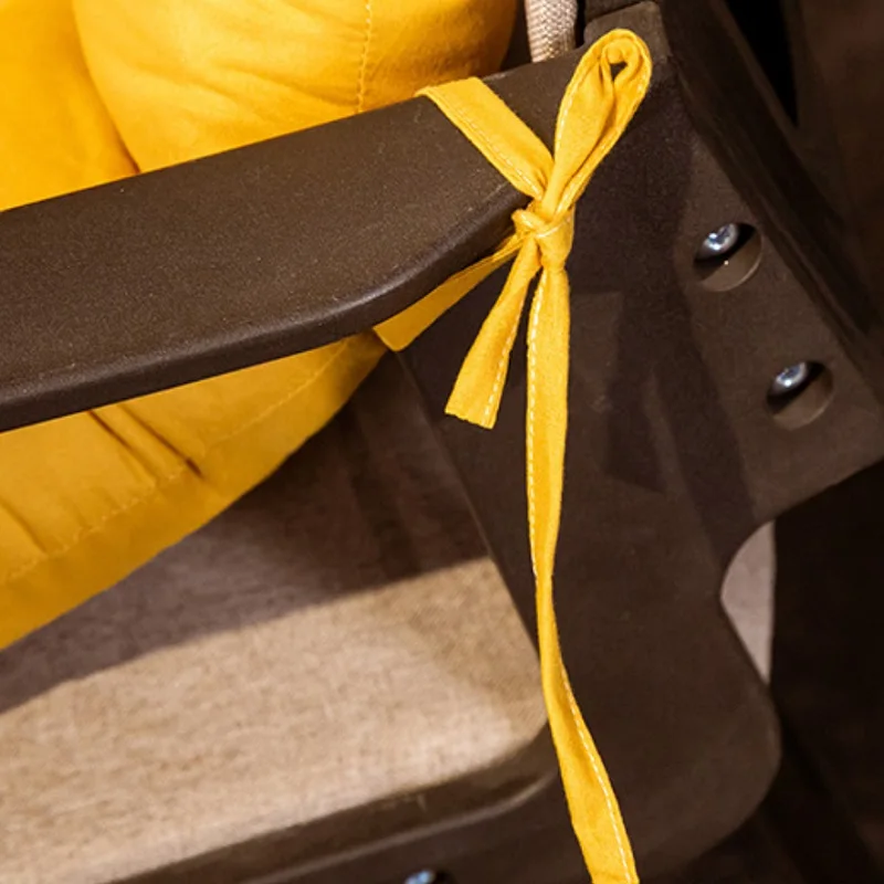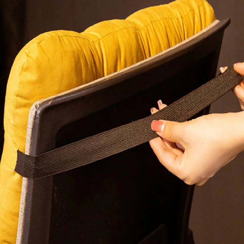 Poduszka na siedzenie ma krawaty, aby bezpiecznie przymocować ją do krzesła, niełatwo się zsunąć.