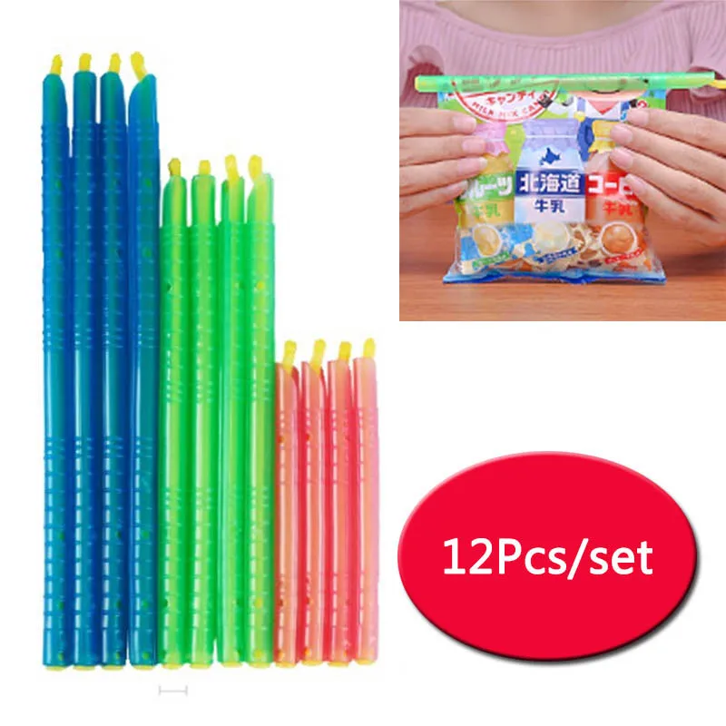 Pakowanie: 12 sztuk/zestaw klips do torebek do przechowywania (zestaw 4 dla każdego rozmiaru, z losowymi kolorami)
