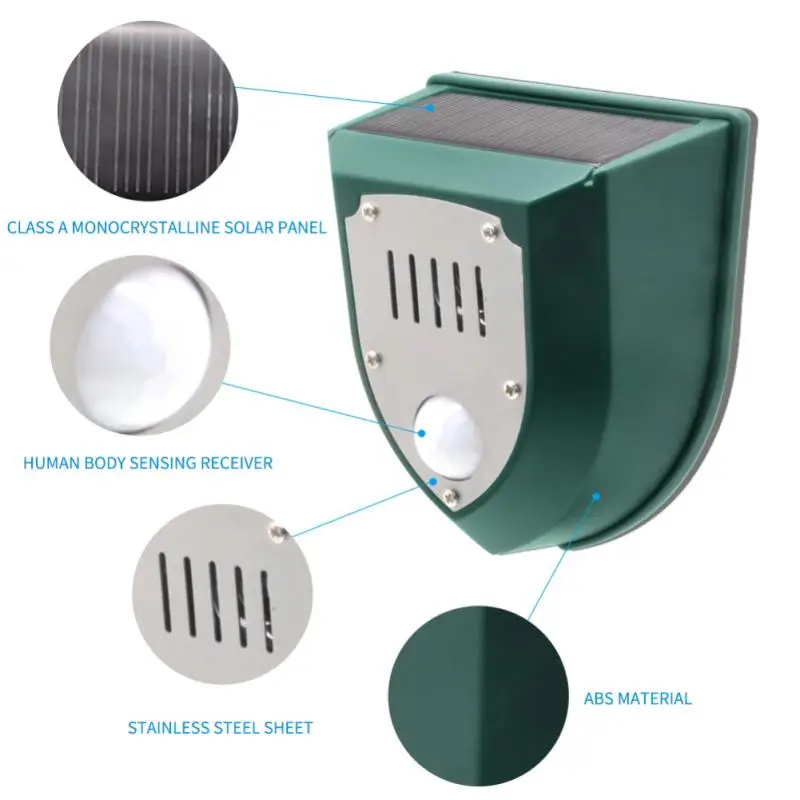 3. Odległość ruchu 5-8 metrów, kąt wykrywania 125 °, dźwięk psa i pistoletu 129db i lampa błyskowa