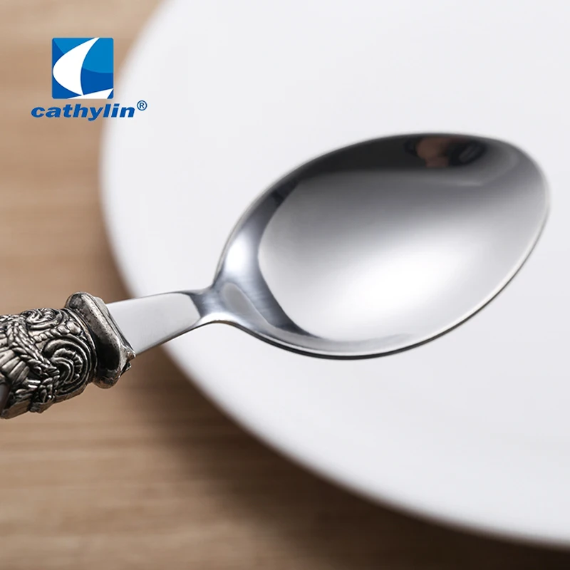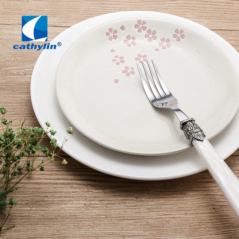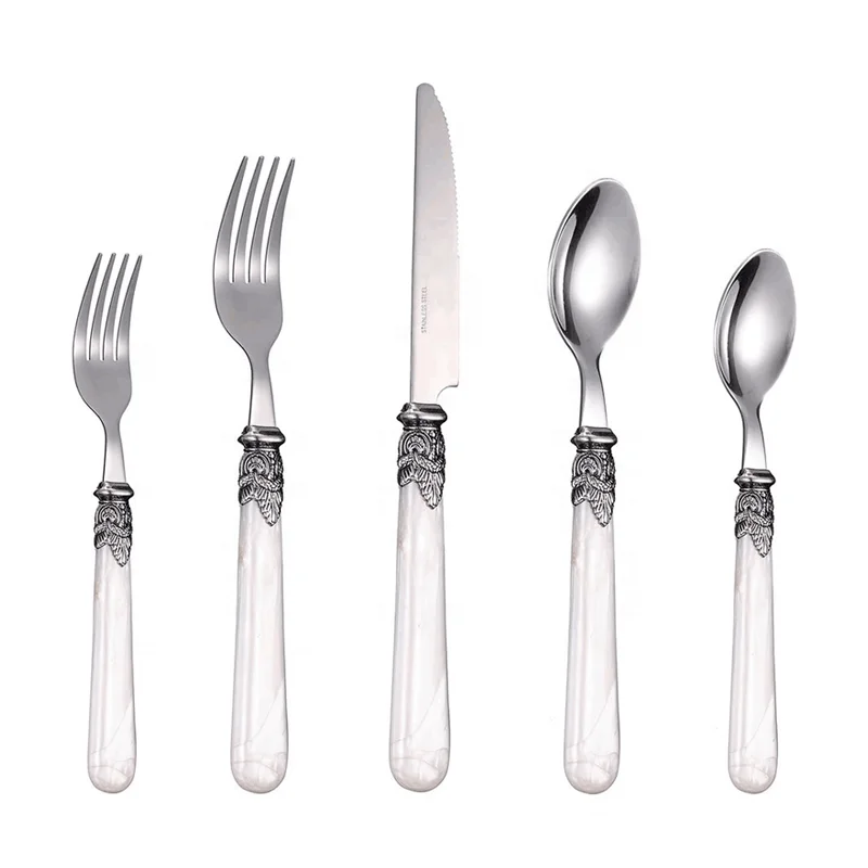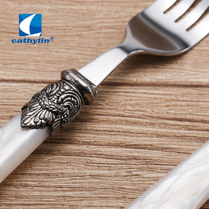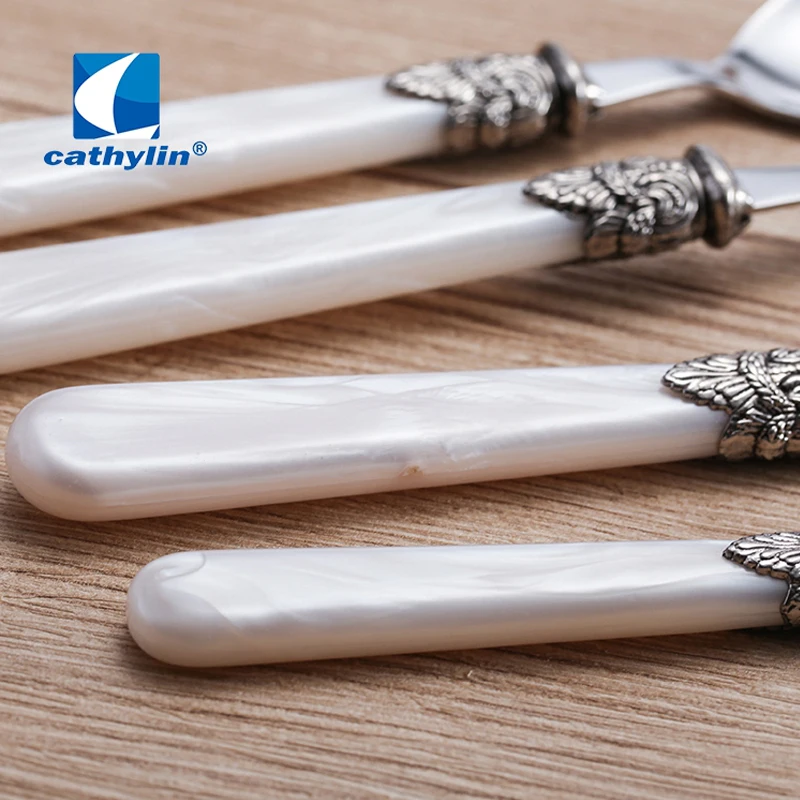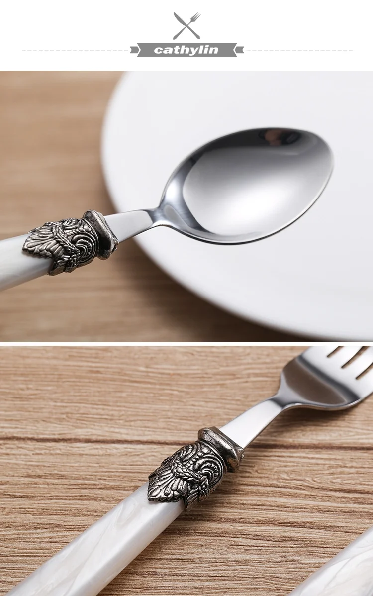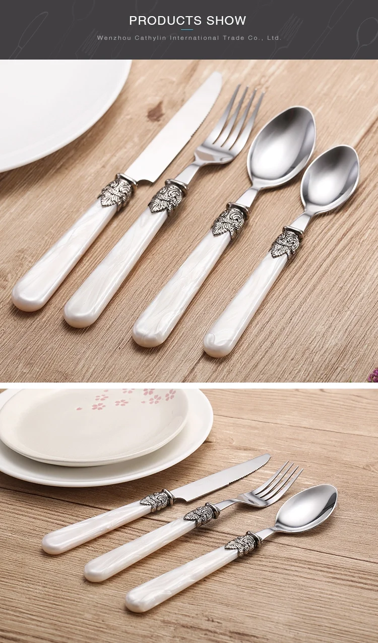 CATHYLIN ze stali nierdzewnej stalowe sztućce zestaw zestawy naczyń stołowych akrylowy uchwyt restauracja sztućce ślubne w stylu Vintage