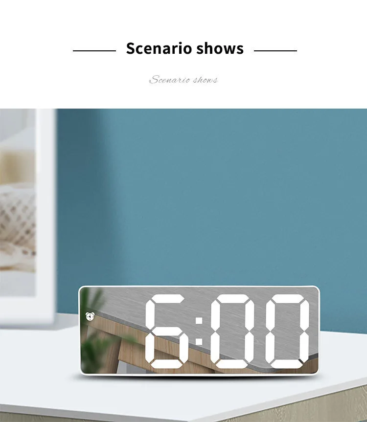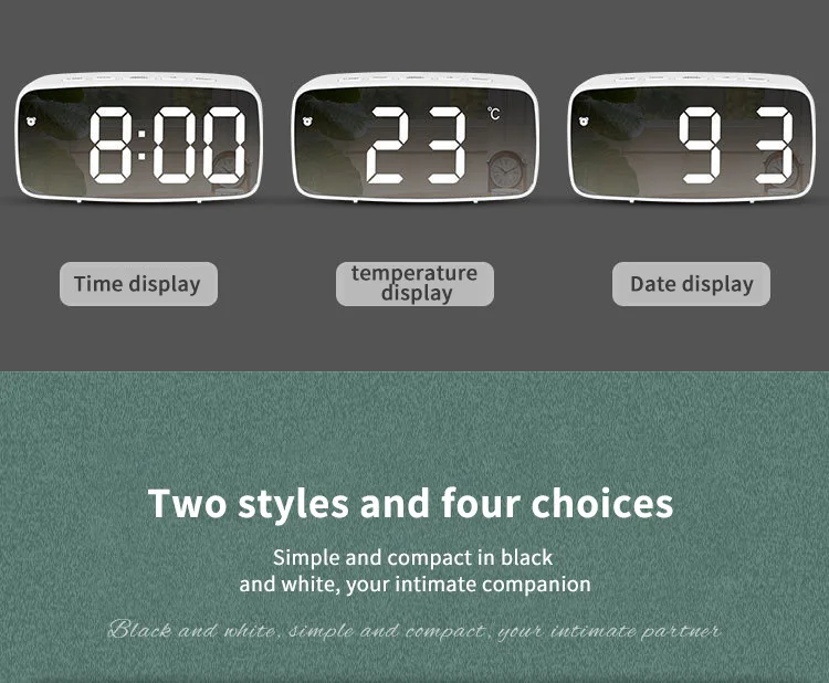 Parametry produktu Nazwa: lustrzany zegar LED Materiał: tworzywo ABS z tworzywa sztucznego Styl: w dłuższym stylu Kolor: czarny/biały