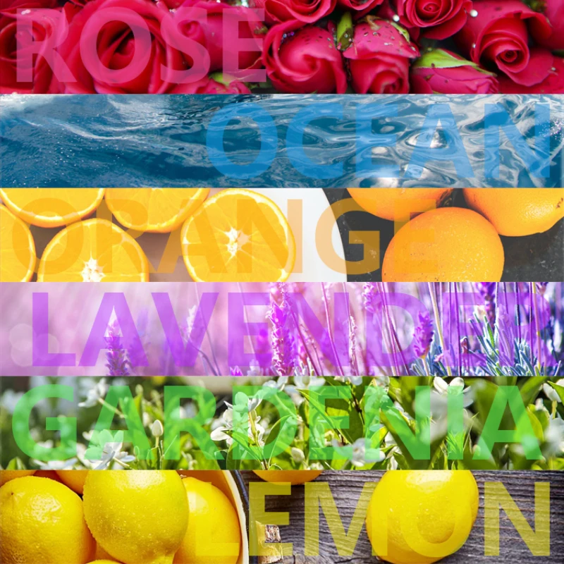 -Sześć opcji zapachowych: Ocean, cytryna, lawenda, pomarańcza, Gardenia, róża