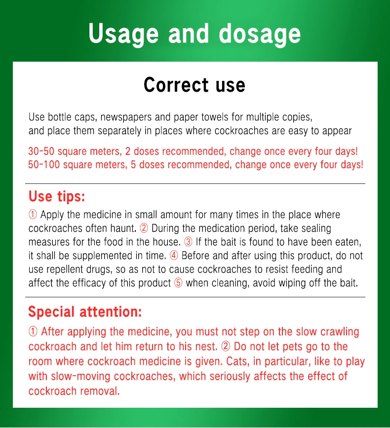 3-10 dni, aby osiągnąć efekt ciągłego zabijania, większość karaluchów umrze w gnieździe.