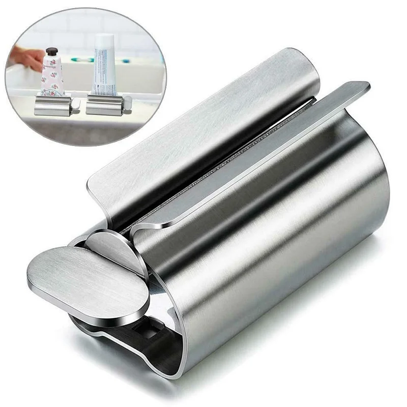 Zestaw akcesoriów łazienkowych Rolling pasta do zębów wyciskacz Tube dozownik pasty do zębów uchwyt na szczoteczki do zębów stojak ze stali nierdzewnej dozownik