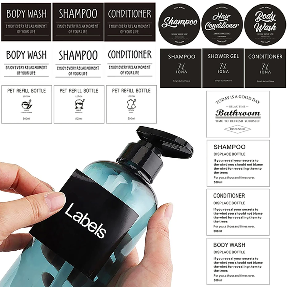 Zestaw etykiet dozownik do mydła zestaw naklejek wodoodporne unikalne naklejki na butelki wymienne etykiety szamponu odżywka