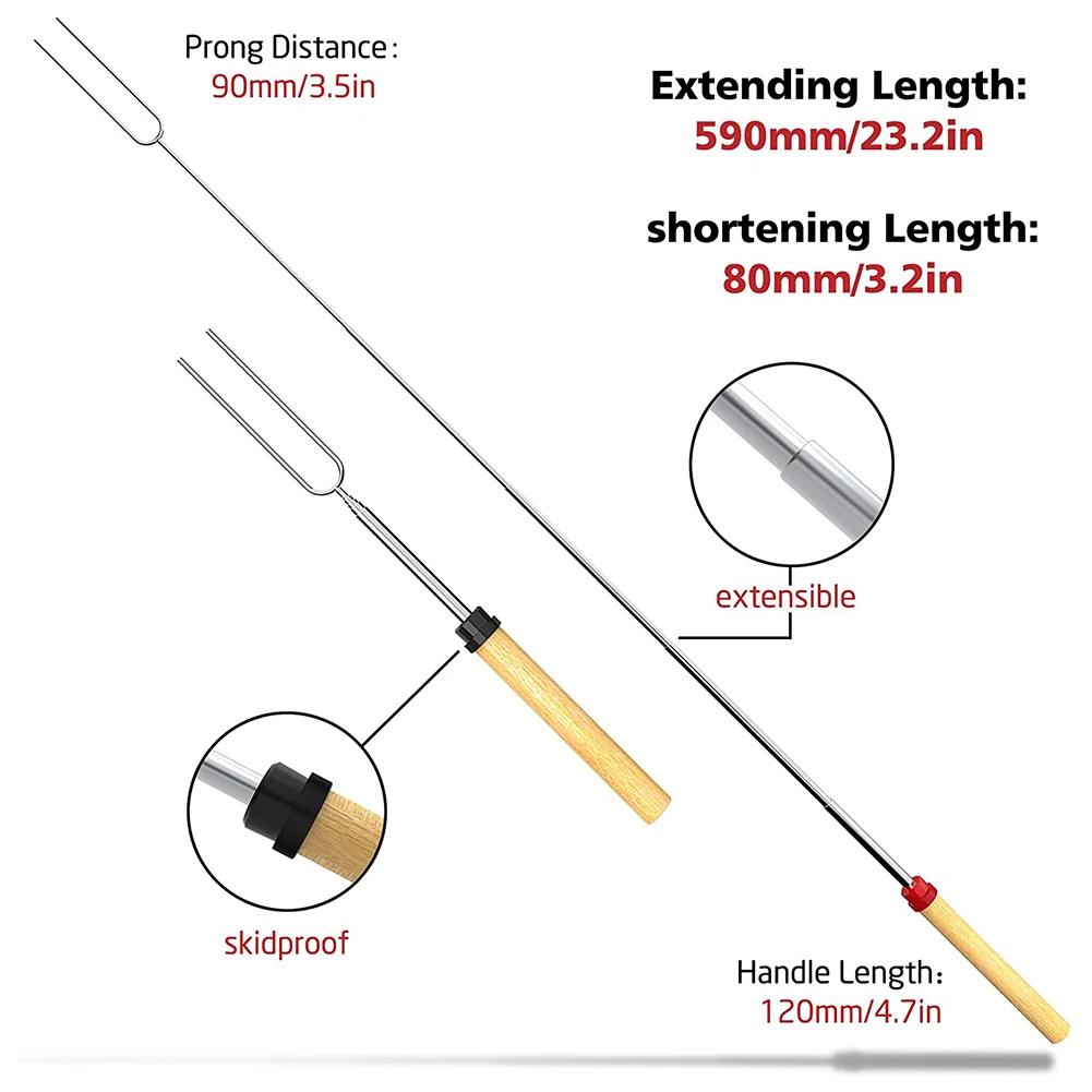 Zestaw kijów ze stali nierdzewnej do pieczenia Marshmallow wysuwany podwójny widelec do grillowania na świeżym powietrzu do kuchni na grilla