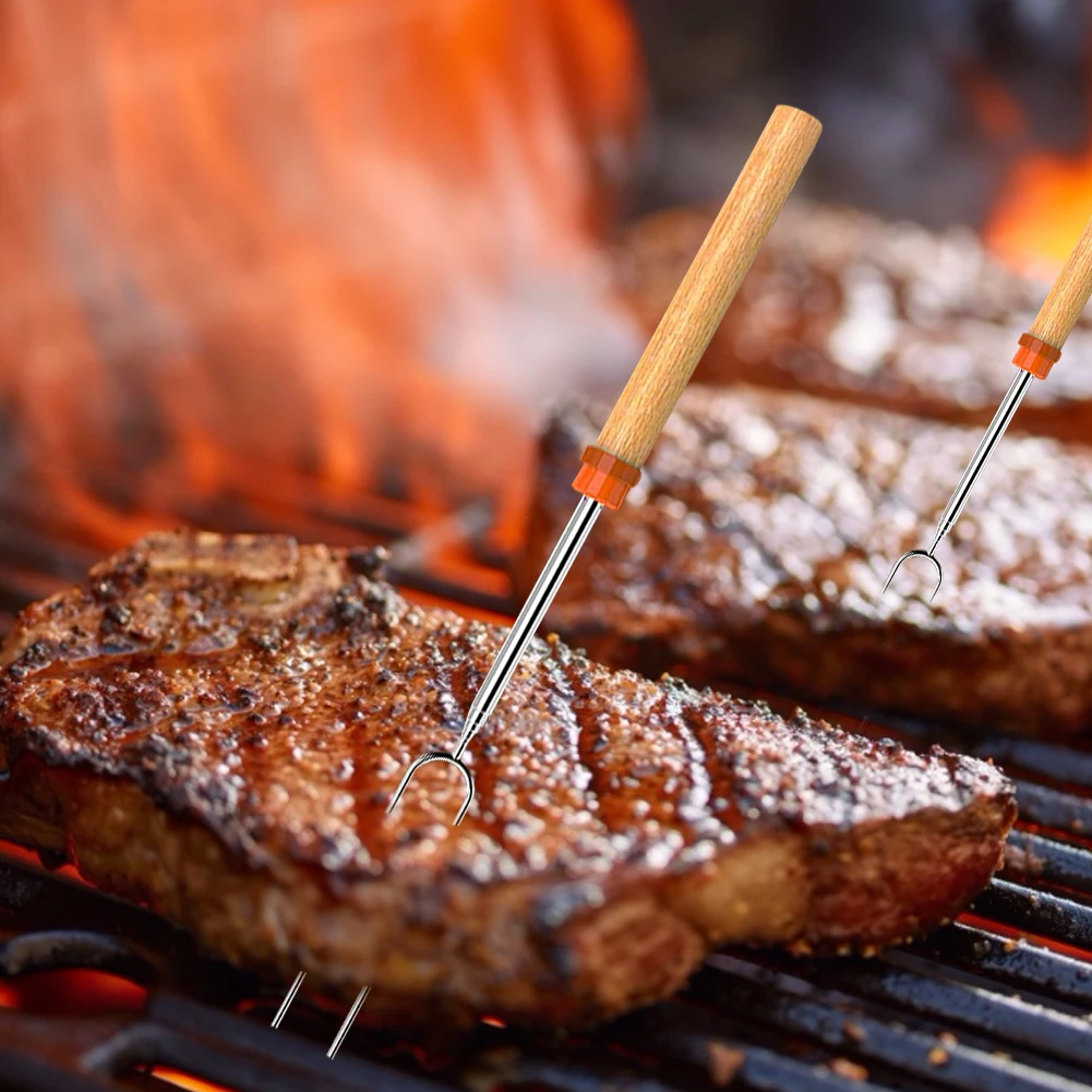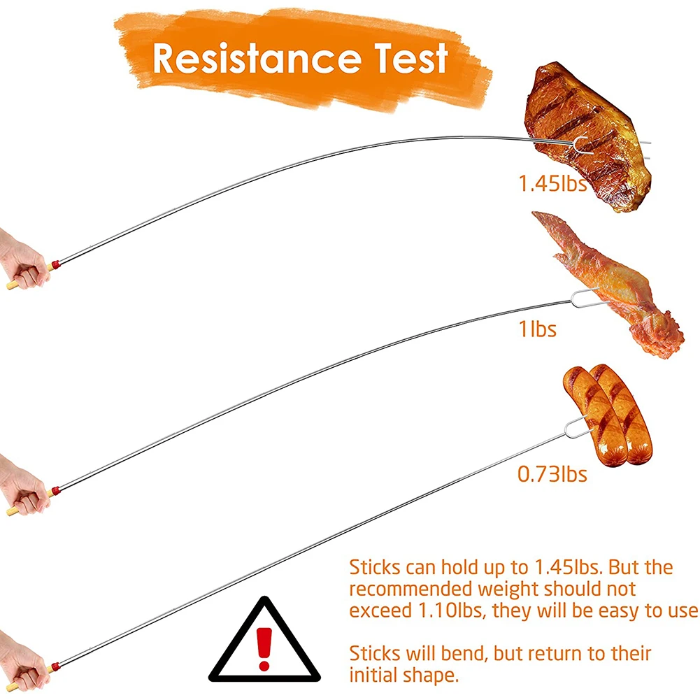 Specjalnie zaprojektowany do grillowania lekkich potraw, takich jak marshmallows, kulki rybne, kiełbaski, pomidory, cebula, warzywa itp. widełki są płaskie i niełatwe do zranienia ludzi.