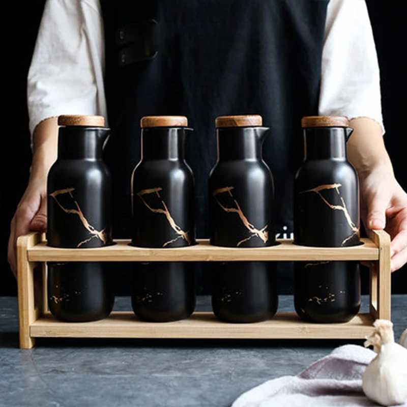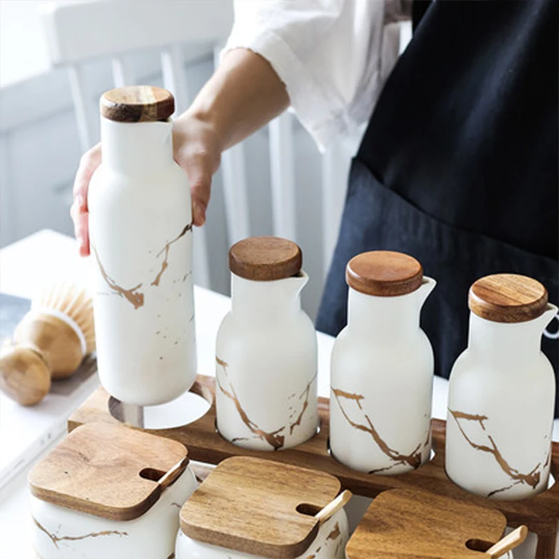 Zestaw pojemników na przyprawy marmuru ceramicznych dozownik do sosów pojemnik stojak na przyprawy sól cukier Bowlfor kuchnia młynek do pieprzu schowek