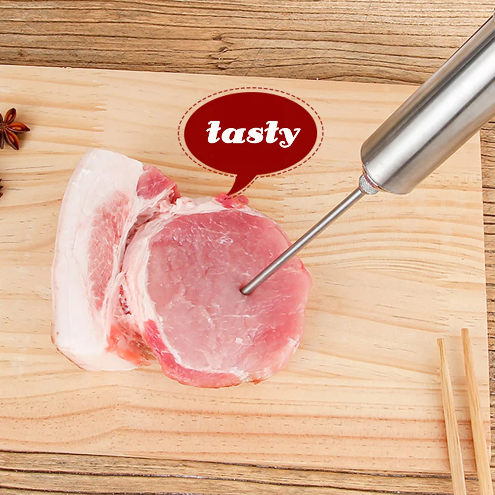 Wtryskiwacz mięso z grilla wykonany jest ze stali nierdzewnej, która jest odporna na korozję i rdzę i ma długą żywotność. Zapewnienie bezpieczeństwa i zdrowia rodziny.