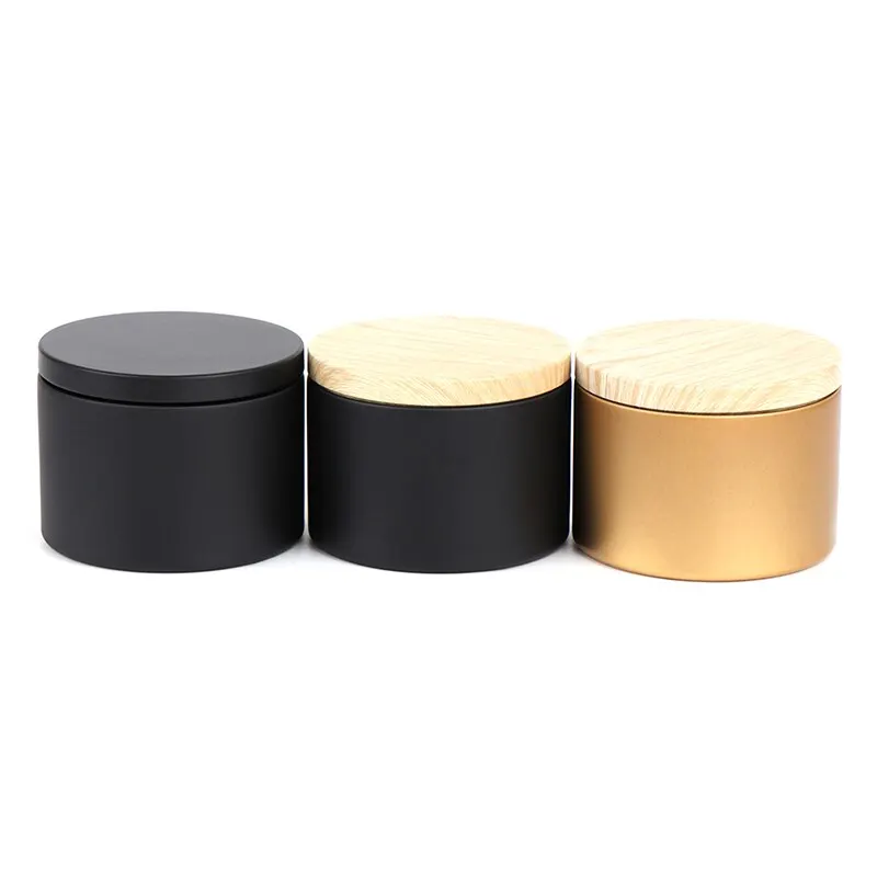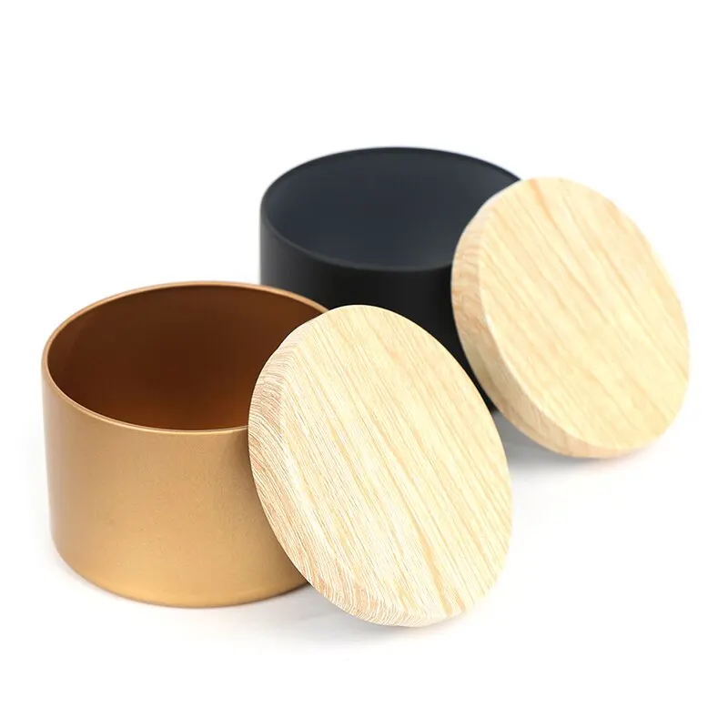 Do odlewania świec Tinplate puste słoiki pokrywki z drewna naczynie na kosmetyki pojemnik na herbatę