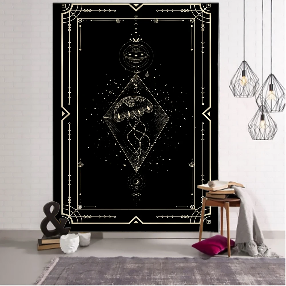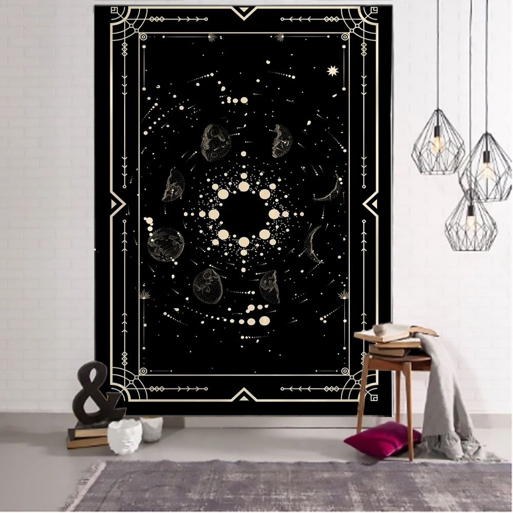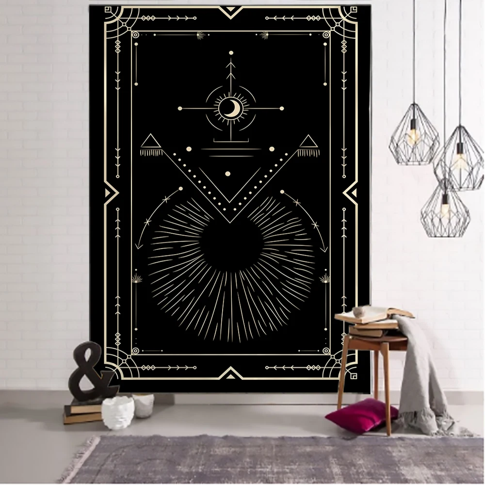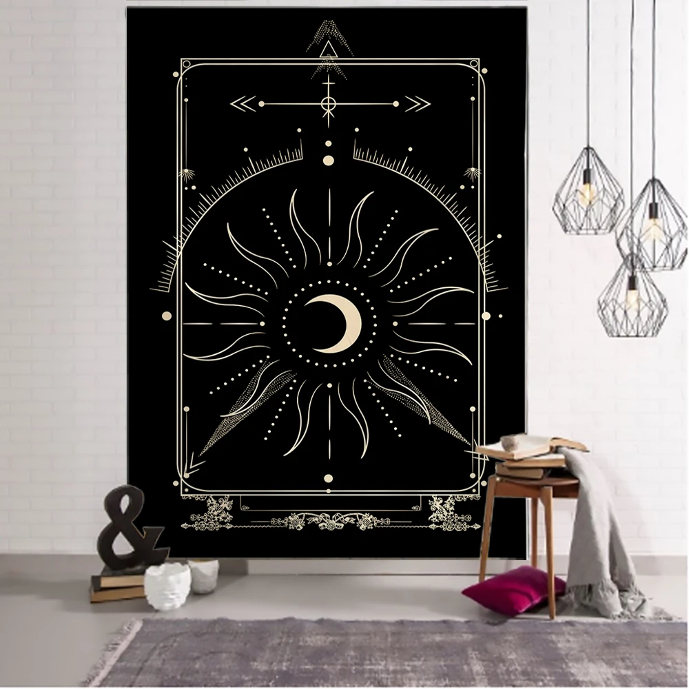Złoty czarny słońce księżyc Tarot Mandala gobelin ścienny wiszący czary ściana hipisowska dywany dekoracja do sypialni gobelin psychedeliczny