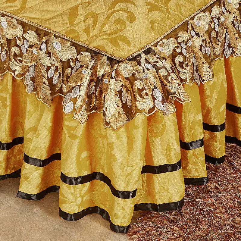 Złoty luksus zima narzuta na łóżku gruba strona główna falbanka na ramę łóżka w stylu prześcieradła haft bawełna w europejskim stylu łóżko rozprzestrzenia