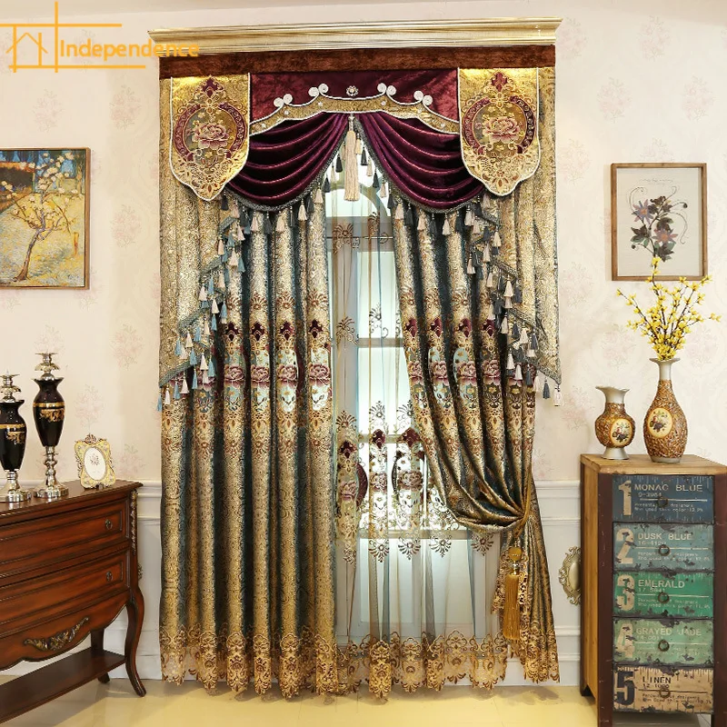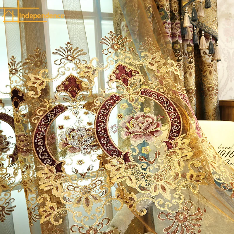 Złoty skórzany Hollow luksusowe wysokiej klasy europejskie zasłony haftowane cieniowania zasłony, możliwość personalizacji dla dzienny jadalnia sypialnia