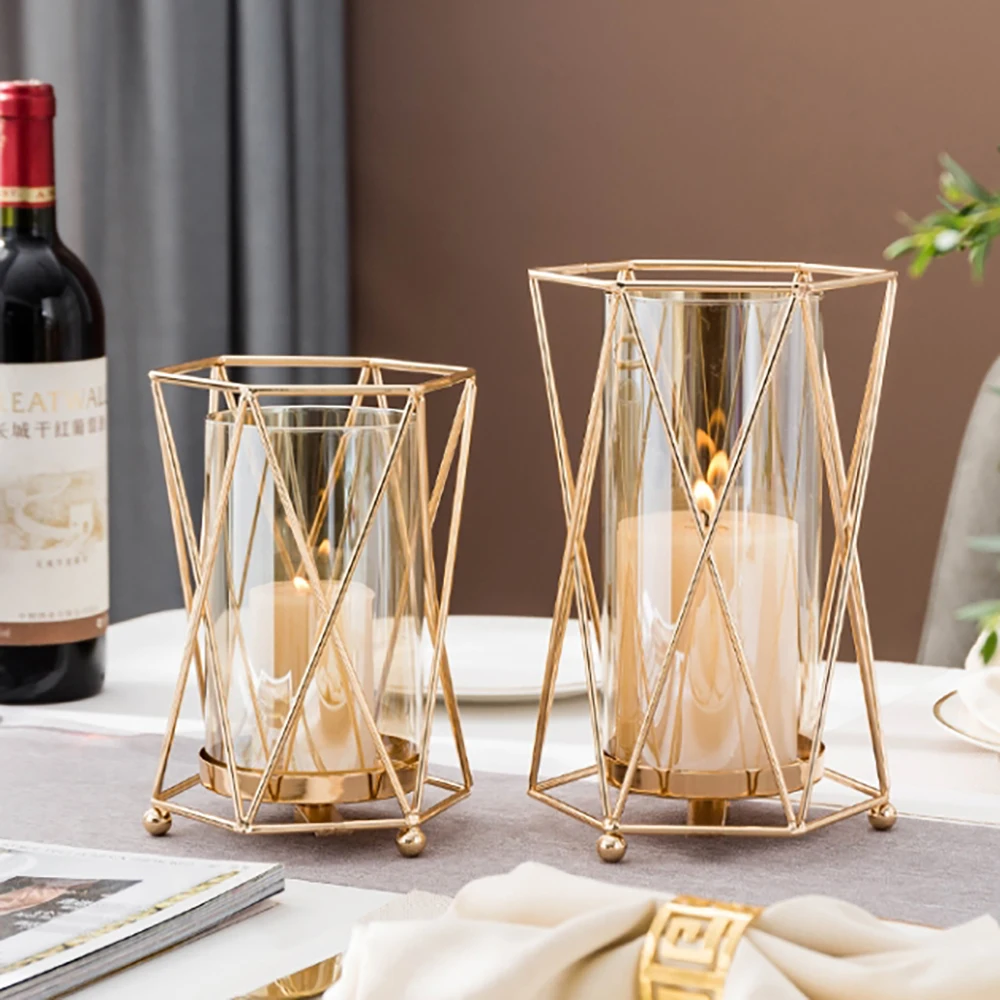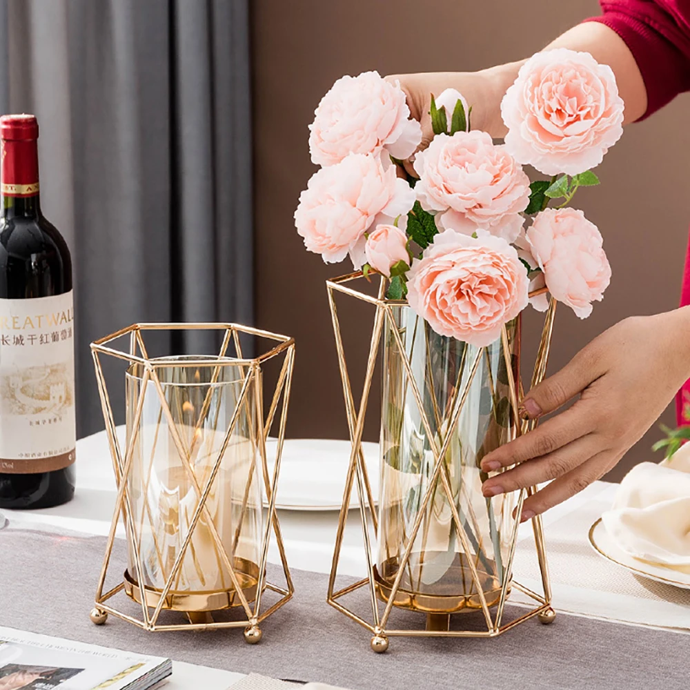 Luksusowy złoty szklany wazon metalowy uchwyt na świeca kryształowa