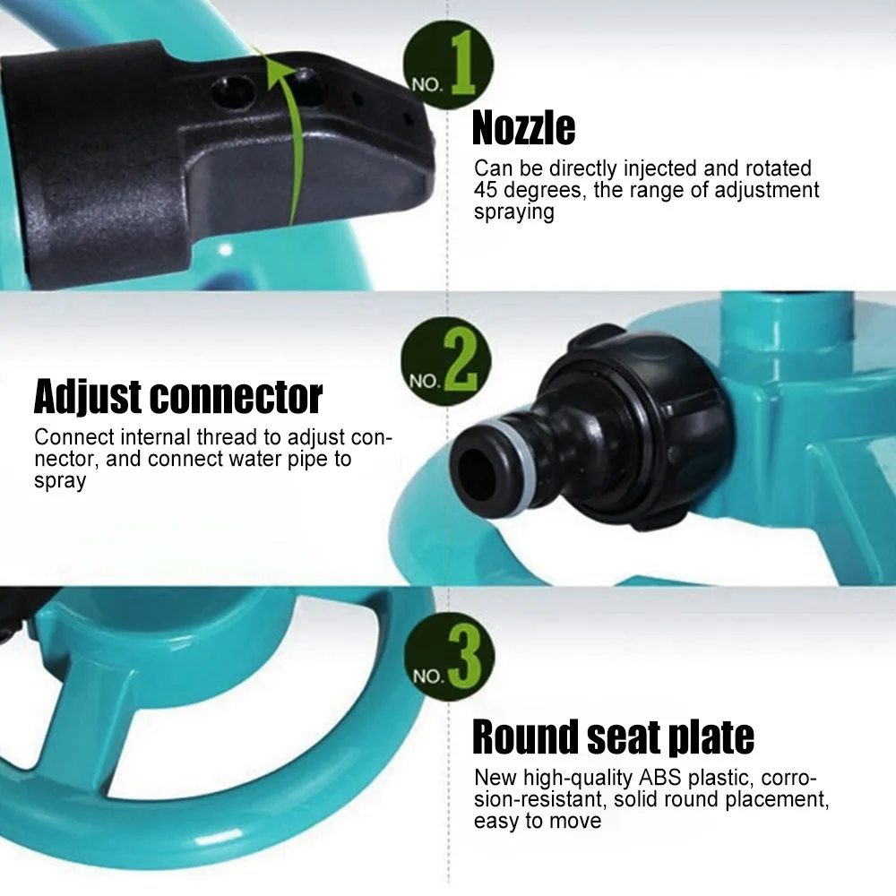 6. Konstrukcja oszczędzająca wodę: dzięki funkcji obracania o 360 stopni i tryskaniu trzema dyszami, spryskiwacz trawnika może przybrać przydatna całą wodę, aby dobrze podlewać ogród bez marnowania zasobów wodnych.