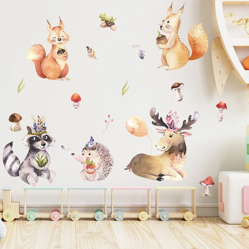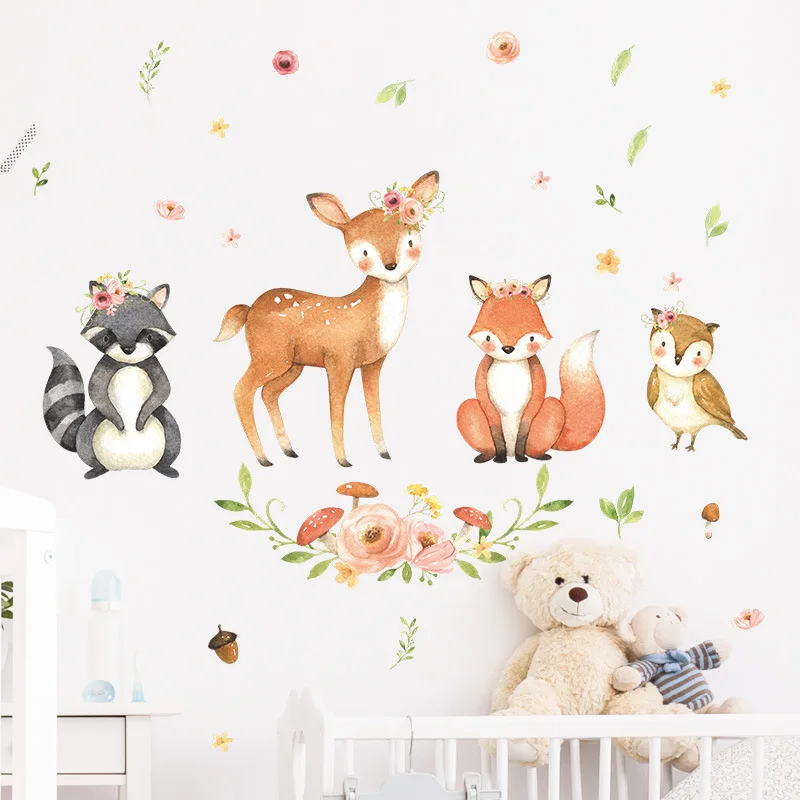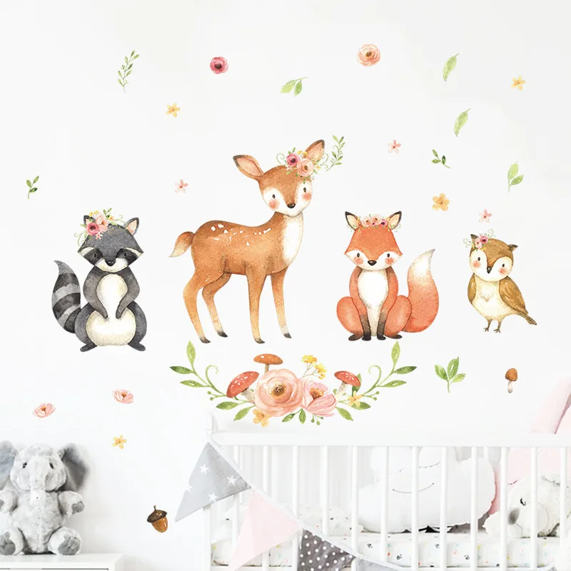 Zwierzęta kreskówkowe naklejki ścienne pokoje dla dzieci Fawn Fox Raccoon naklejki ścienne dla dzieci naklejki tapety dla dzieci pokój dekoracja do pokoju dziecięcego