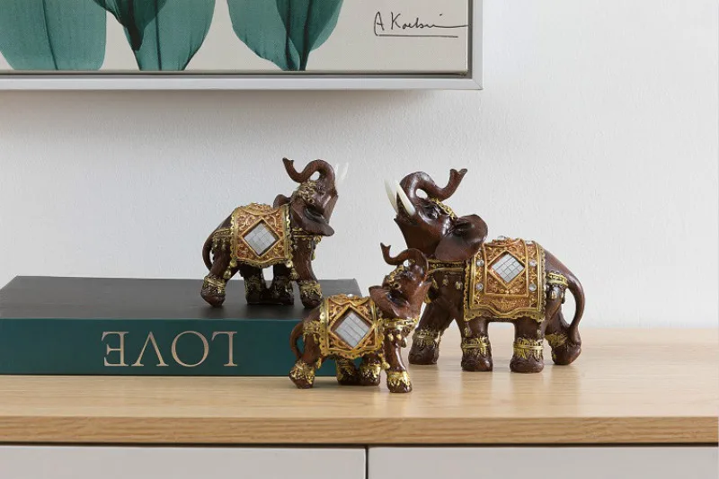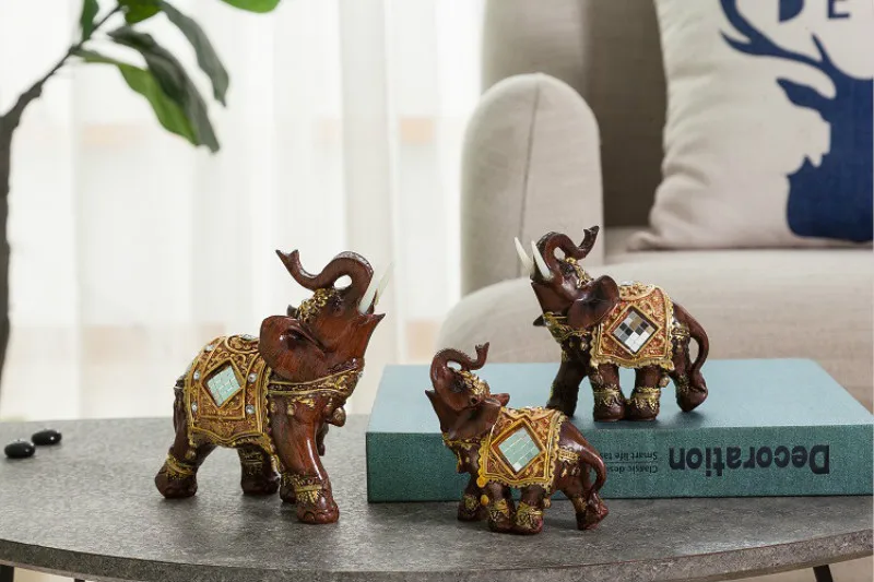 ·Żywica statua zwierząt szczęście Feng Shui słoń rzeźba pomyślny akcesoria do dekoracji domu żywica słoń ozdoby